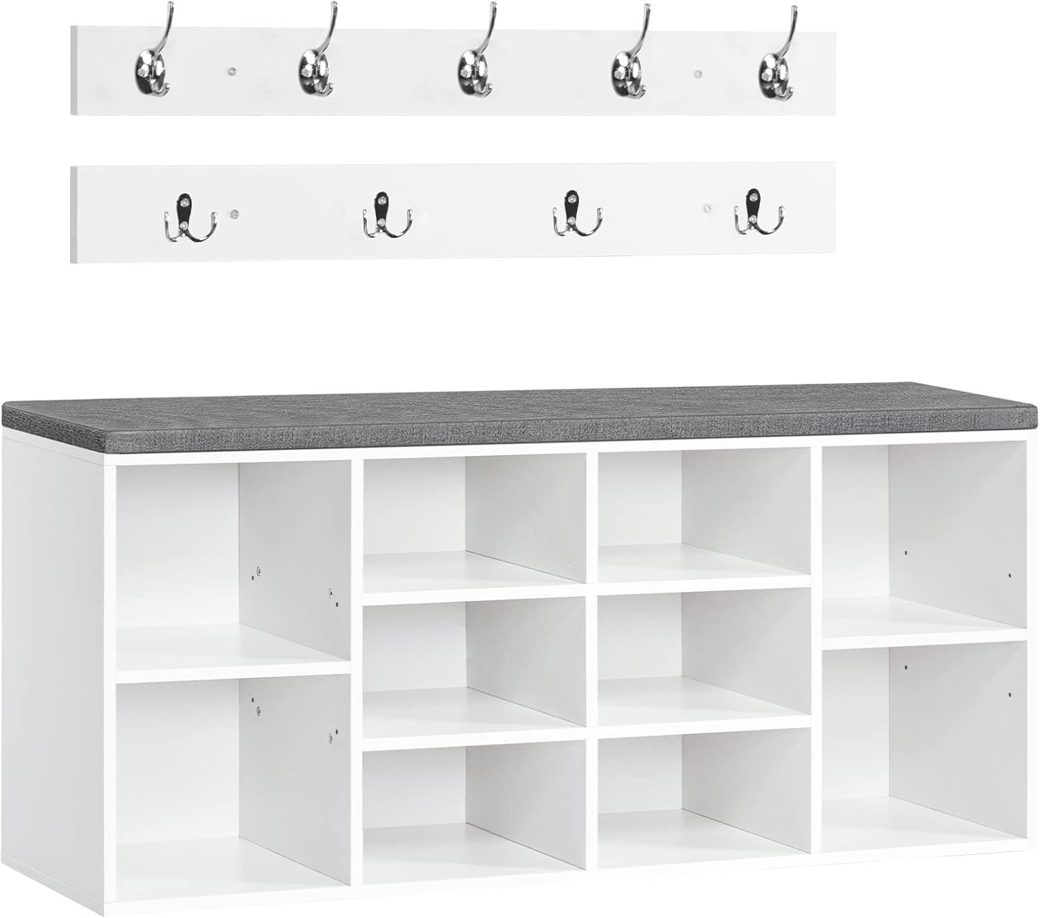 Bringen Sie Ordnung in Ihren Eingangsbereich – mit dem HOOBRO Schuhbank & Garderobe Set in zeitlosem Weiß.