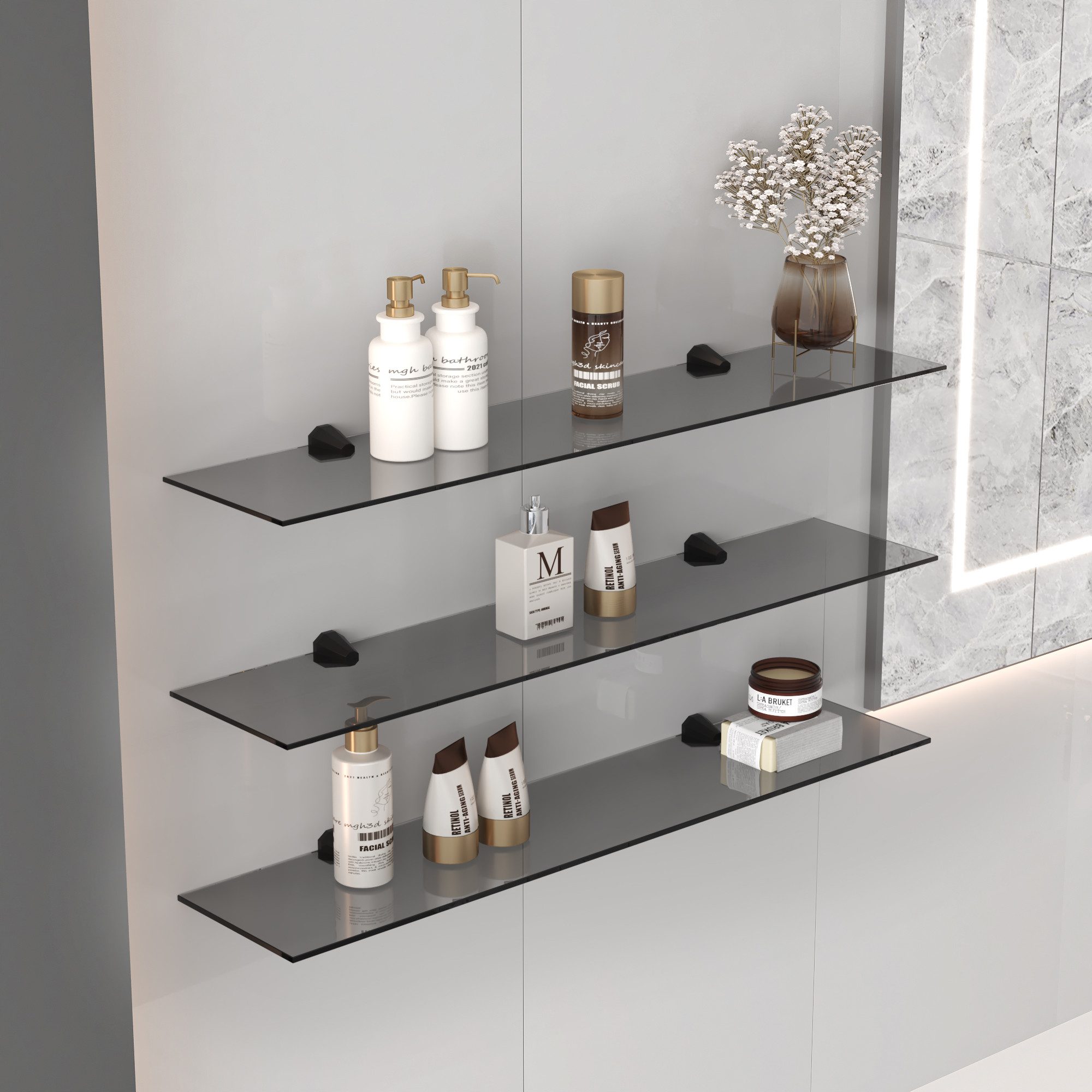 Schwebendes Glasregal – Glattes Grauglas – 6 mm ESG-Sicherheitsglas inkl. Halterung (Schwarz matt)