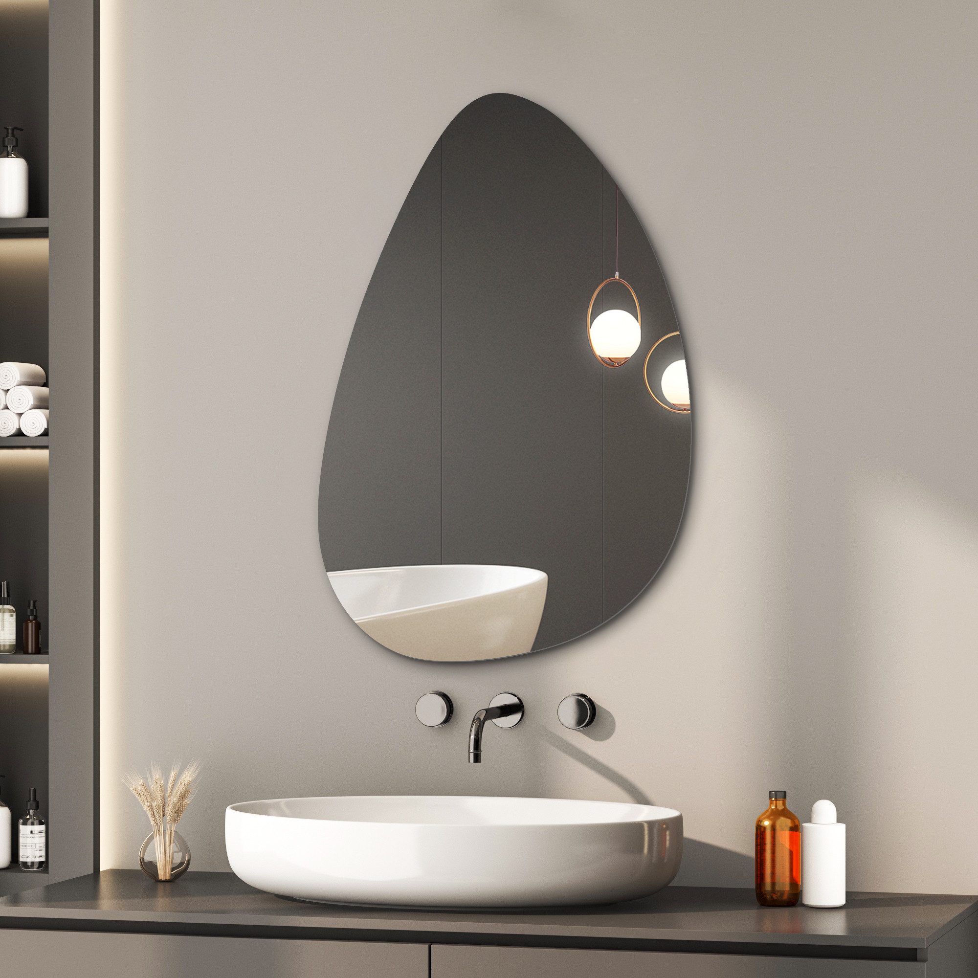 HOPIBATH Asymmetrischer Spiegel Wassertropfen 45x70cm - 5mm HD Glas