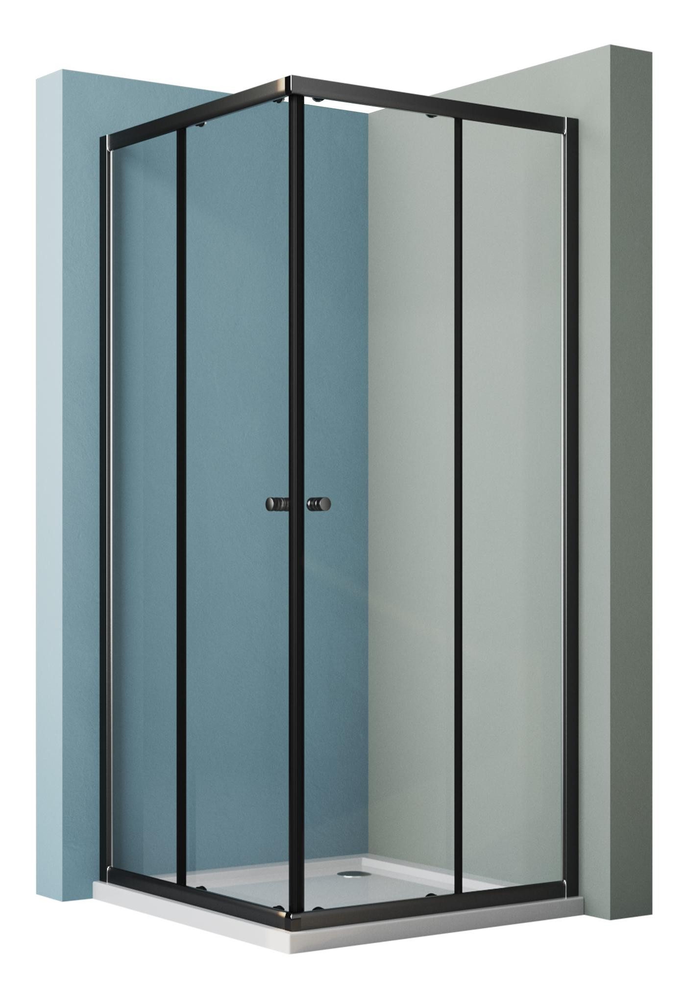 HOPIBATH Duschkabine Schwarz Schiebetür Klarglas 100x100x185cm 5mm ESG