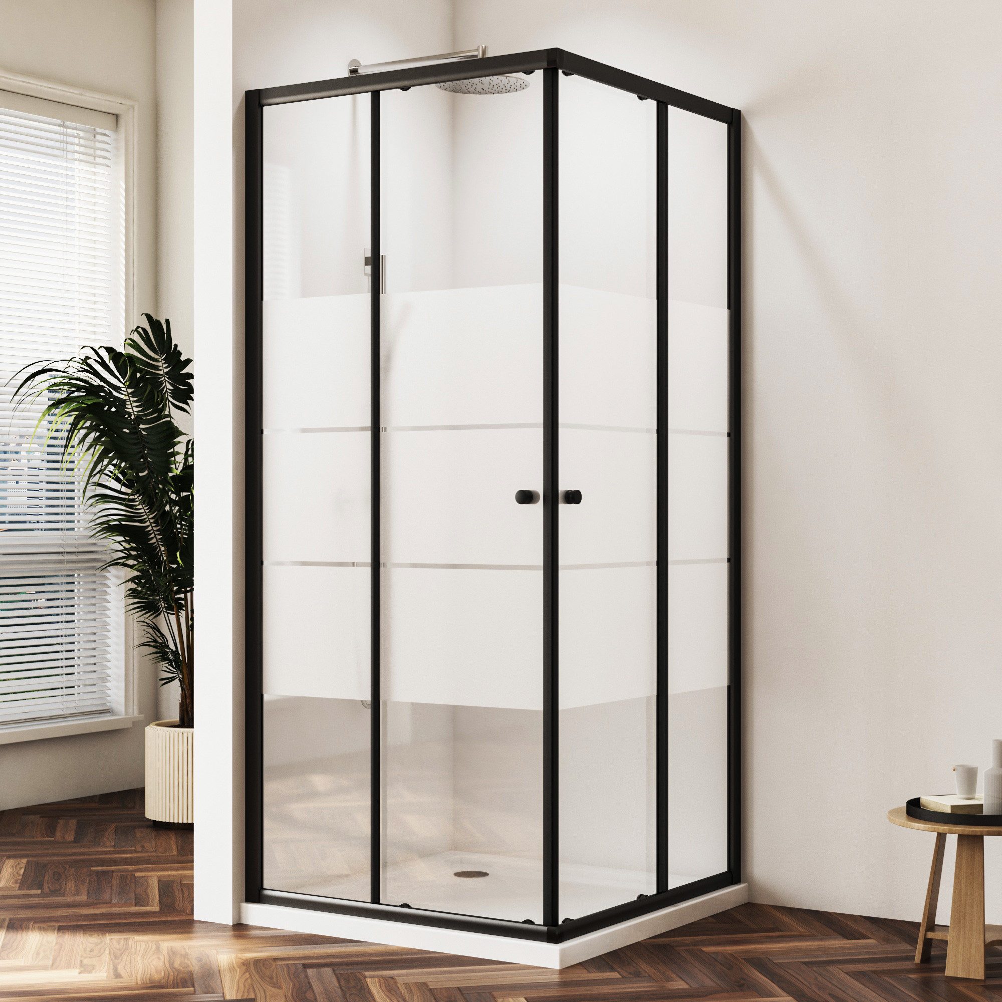 HOPIBATH Duschkabine Schiebetür Schwarz 5mm ESG Milchglas H:185cm