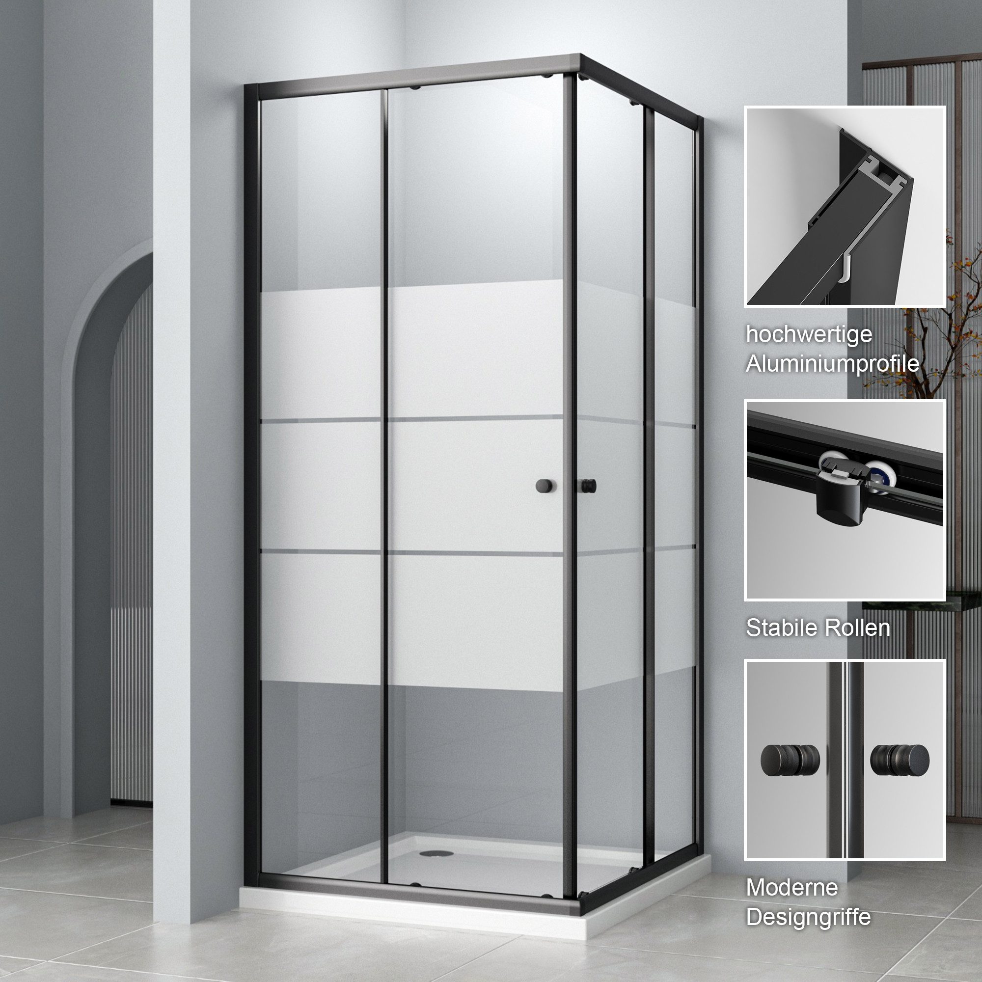 HOPIBATH Duschkabine Schiebetür Schwarz 5mm ESG Milchglas H:185cm