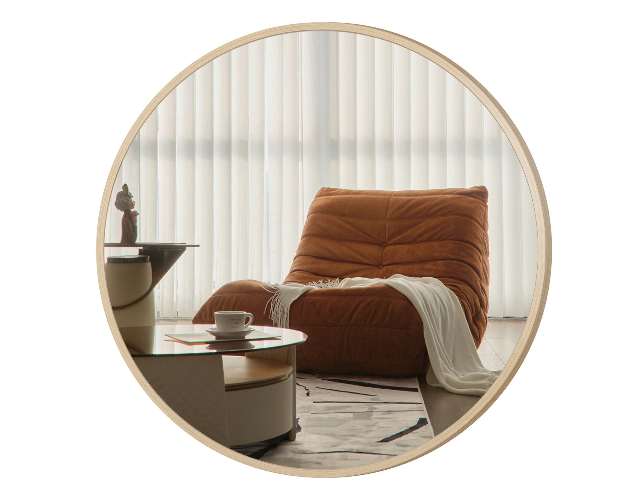 HOPIBATH Rundspiegel 5mm Umweltschutz Spiegel mit Alurahmen Ø60/50cm - Holzfarben