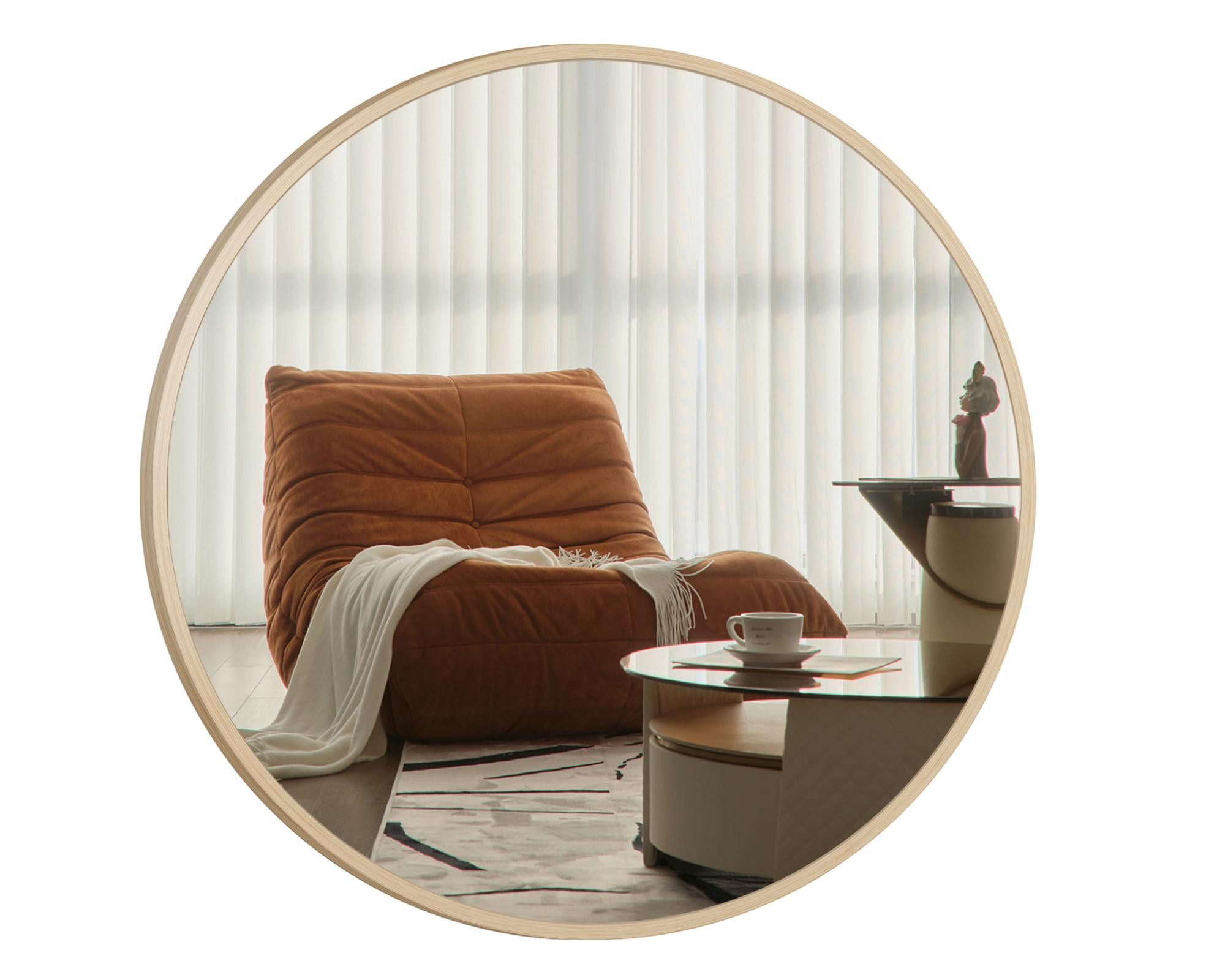 HOPIBATH Rundspiegel 5mm Umweltschutz Spiegel mit Alurahmen Ø60/50cm - Holzfarben