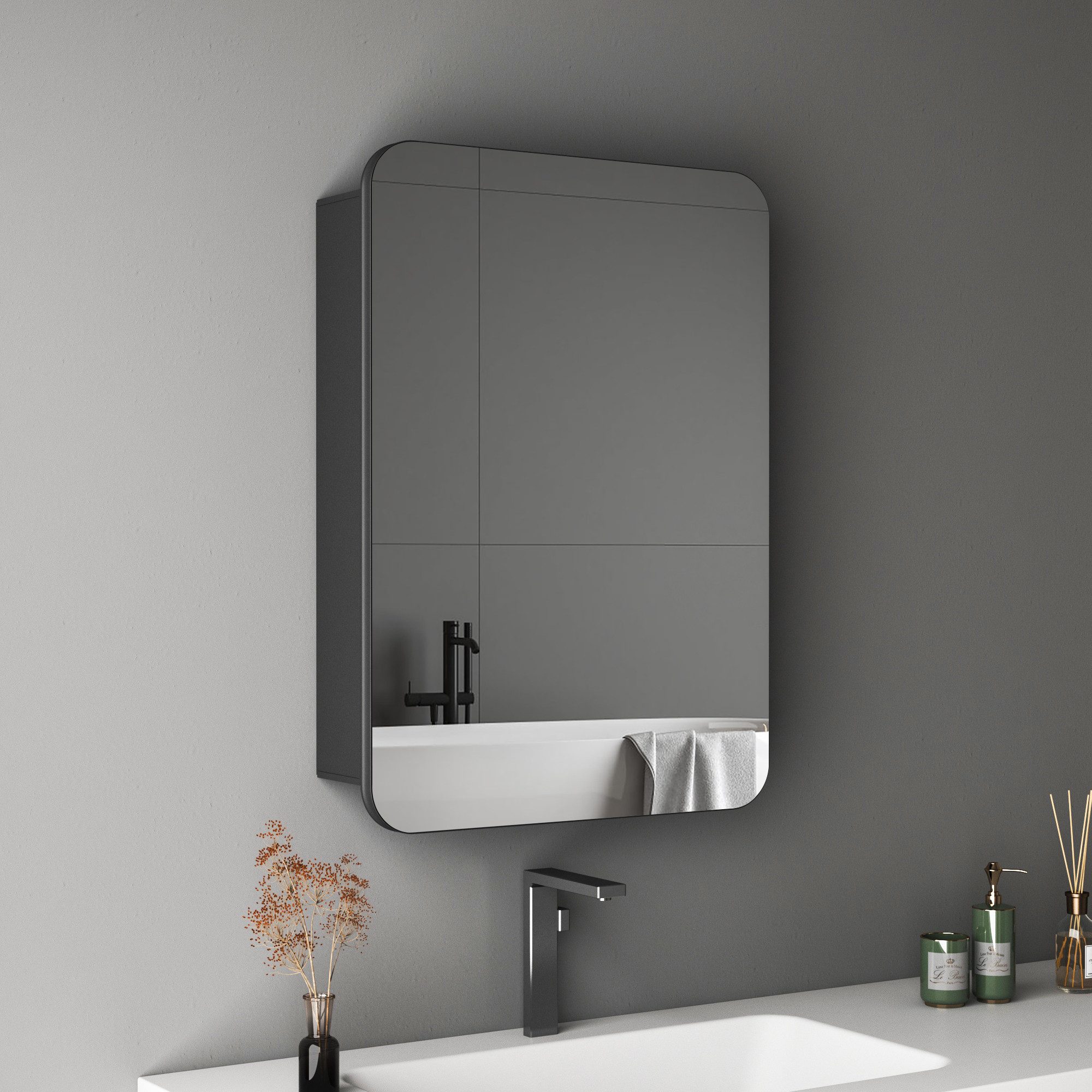 HOPIBATH Aluminium Spiegelschrank Schwarz Matt Rechteckig - 1türig 40x12,5x60cm