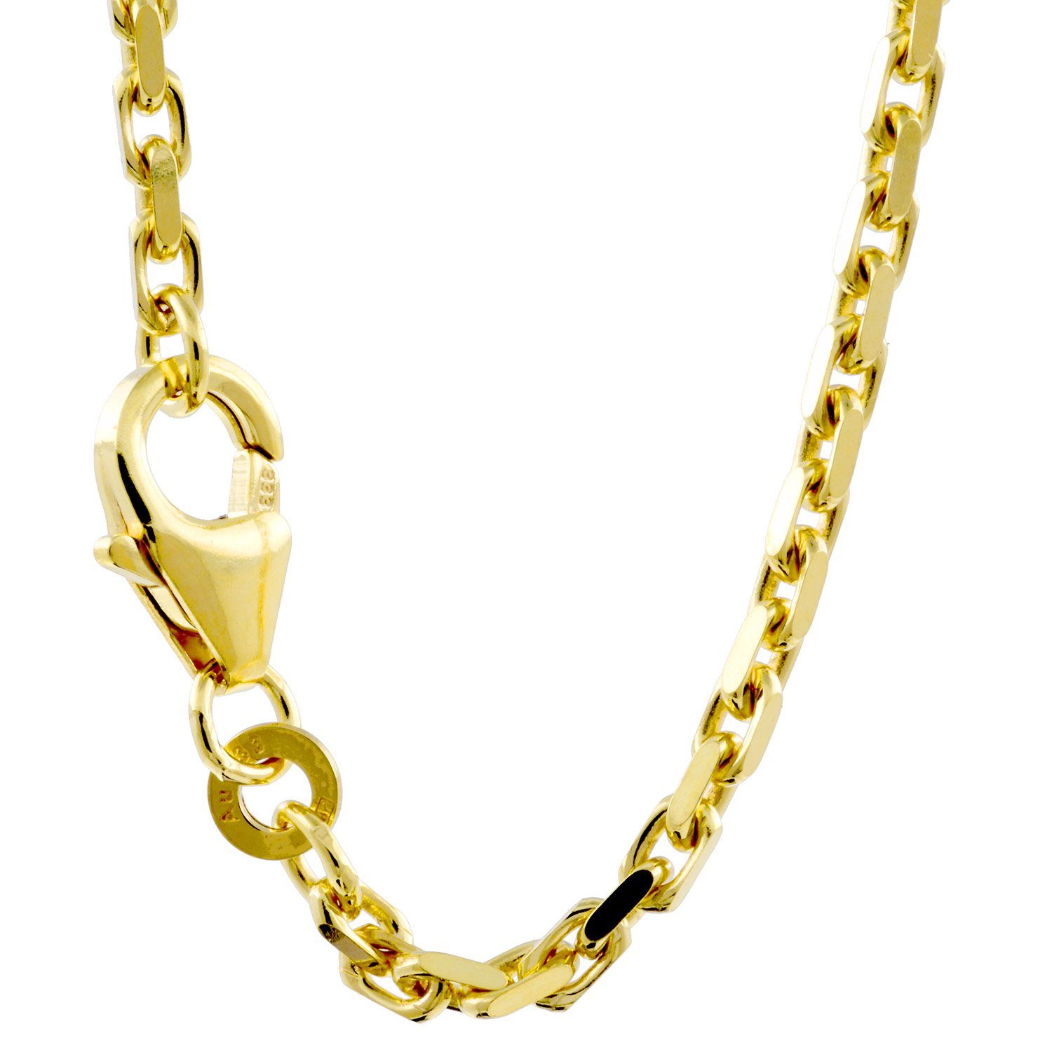 Bei unseren Ketten handelt es sich um eine solide, edle, massive und sehr hochwertige Ausführung in Juwelierqualität. Natürlich ist die Kette gestempelt. Die Ankerkette rund ist absolut präzise gearbeitet und sehr bequem zu tragen. Die Ankerkette ist durch eine Oberflächenbehandlung anlaufgeschützt und danach hochglanzpoliert für ein noch edleres Erscheinungsbild. Es gibt keine unebenen Stellen, keine harte Kanten welche an der Haut reiben könnten. Diese hochwertige Kette wird in Deutschland hergestellt.