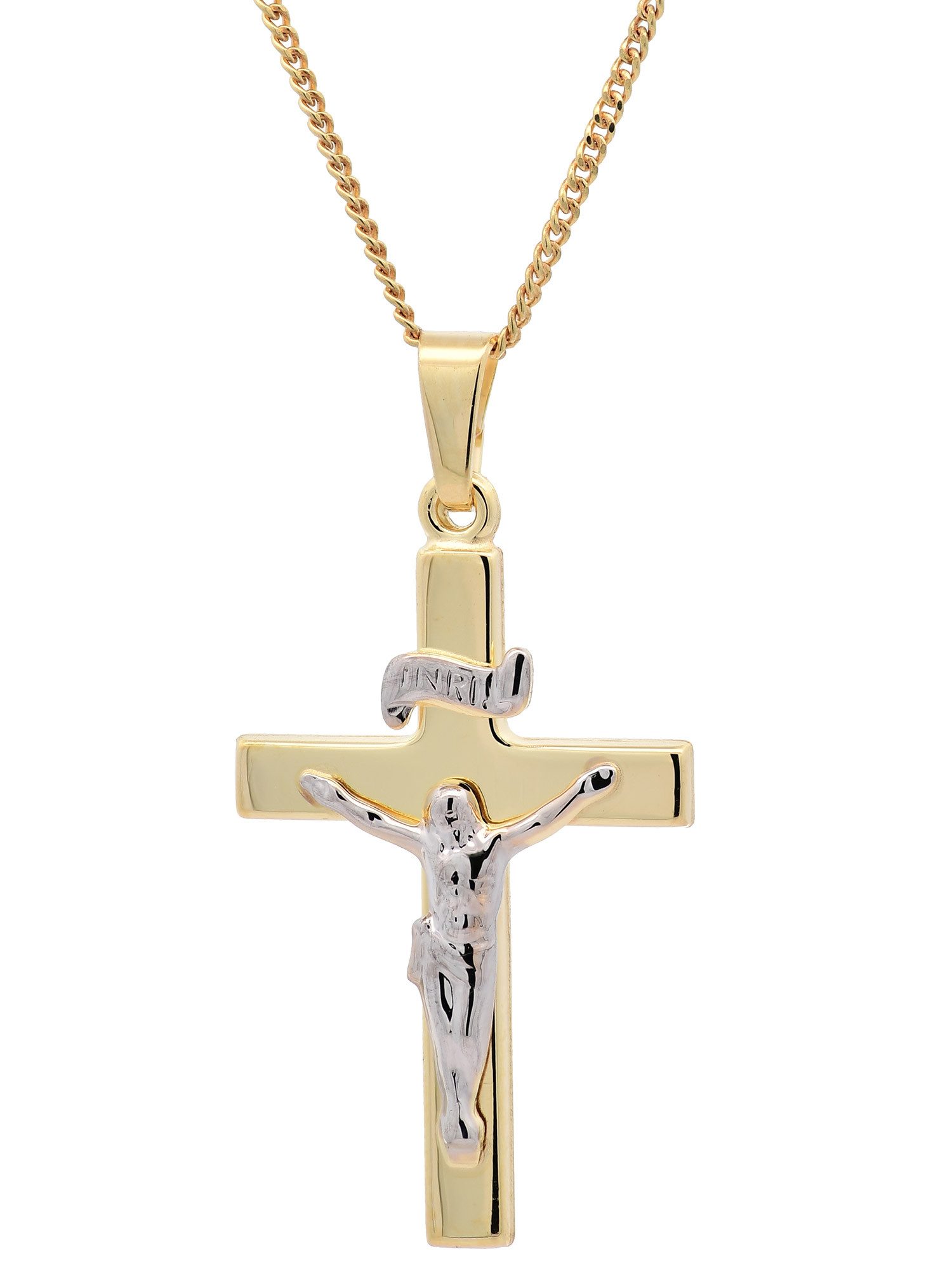 Hochwertiger Gold Anhänger Kettenanhänger Kreuz Korpus aus massiv 585 - 14 Karat Gelbgold, rhodiniert.