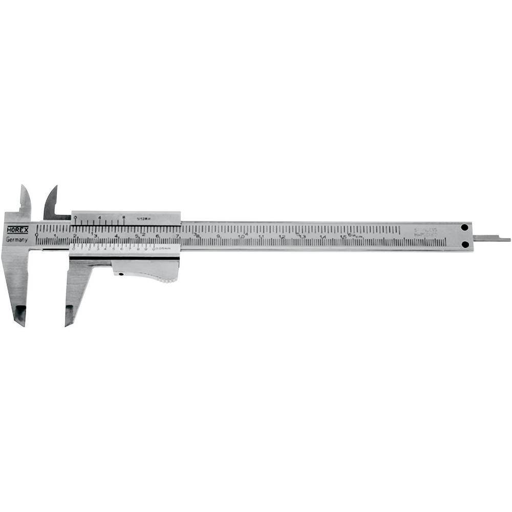 Eigenschaften | Ablesung: 0.05 mm · DIN-Norm: DIN 862 · Material: Stahl · Material-Eigenschaft: rostfrei · Messbereich (max.): 150 mm · Querschnitt (Details): 16 x 3 mm · Schnabel-Длина: 40 mm · kalibriert: Werksstandard (ohne Zertifikat) |