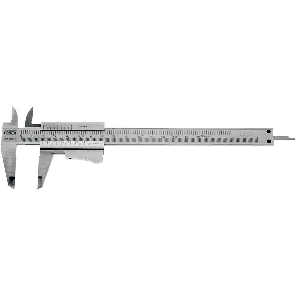 Eigenschaften | Ablesung: 0.05 mm · DIN-Norm: DIN 862 · Material: Stahl · Material-Eigenschaft: rostfrei, matt verchromt · Messbereich (max.): 200 mm · Querschnitt (Details): 16 x 3 mm · Schnabel-Длина: 40 mm · kalibriert: Werksstandard (ohne Zertifikat) |