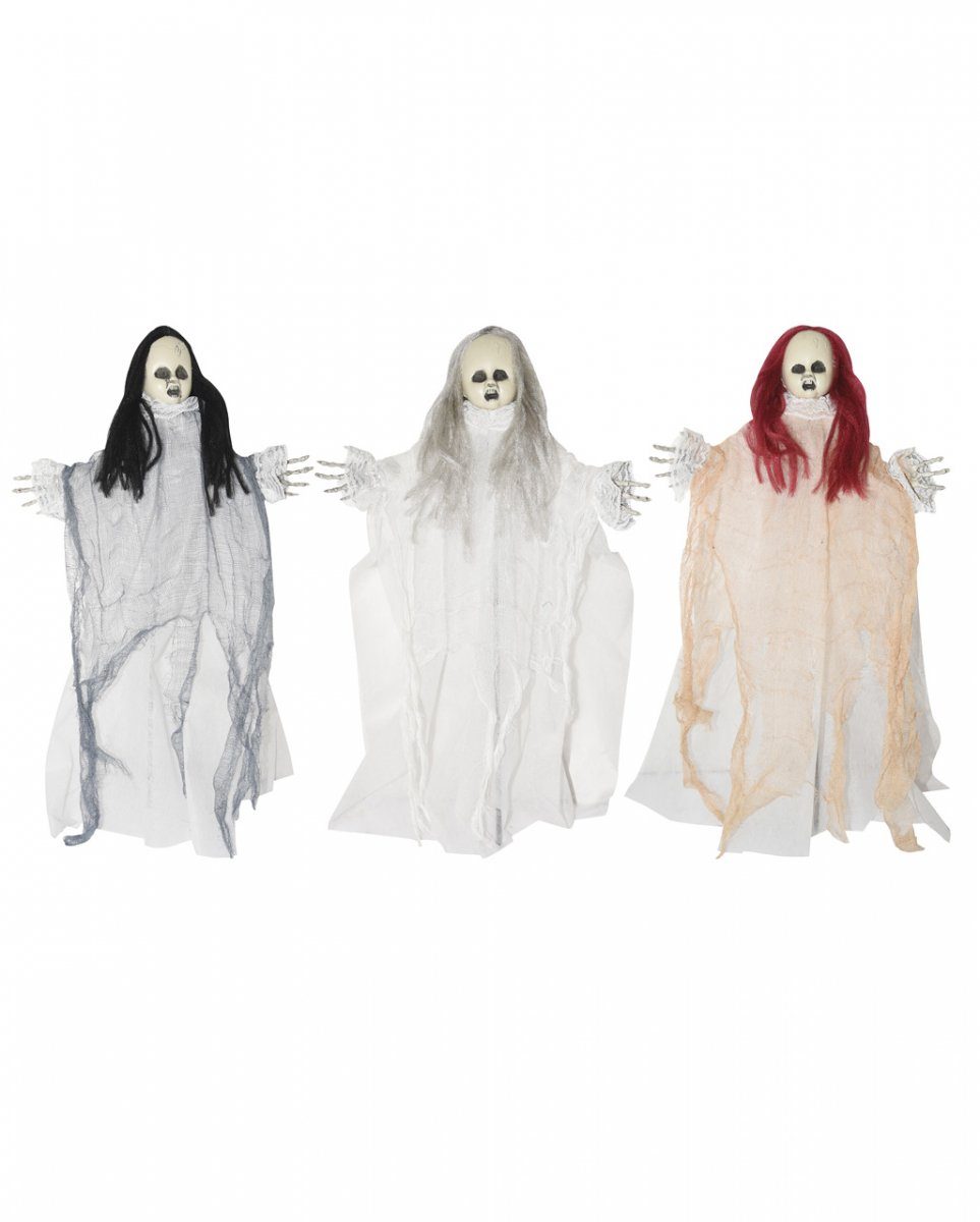 Unsere Geisterpuppe im Fetzenkleid Hängefigur ist die ideale Deko für den Trick or Treat. Das Fetzengewand flattert ebenso im Wind wie die langen Haare, die das blasse Puppengesicht umwehen. Die Haare der Horror Puppe sind entweder Schwarz, Weiß oder Rot.