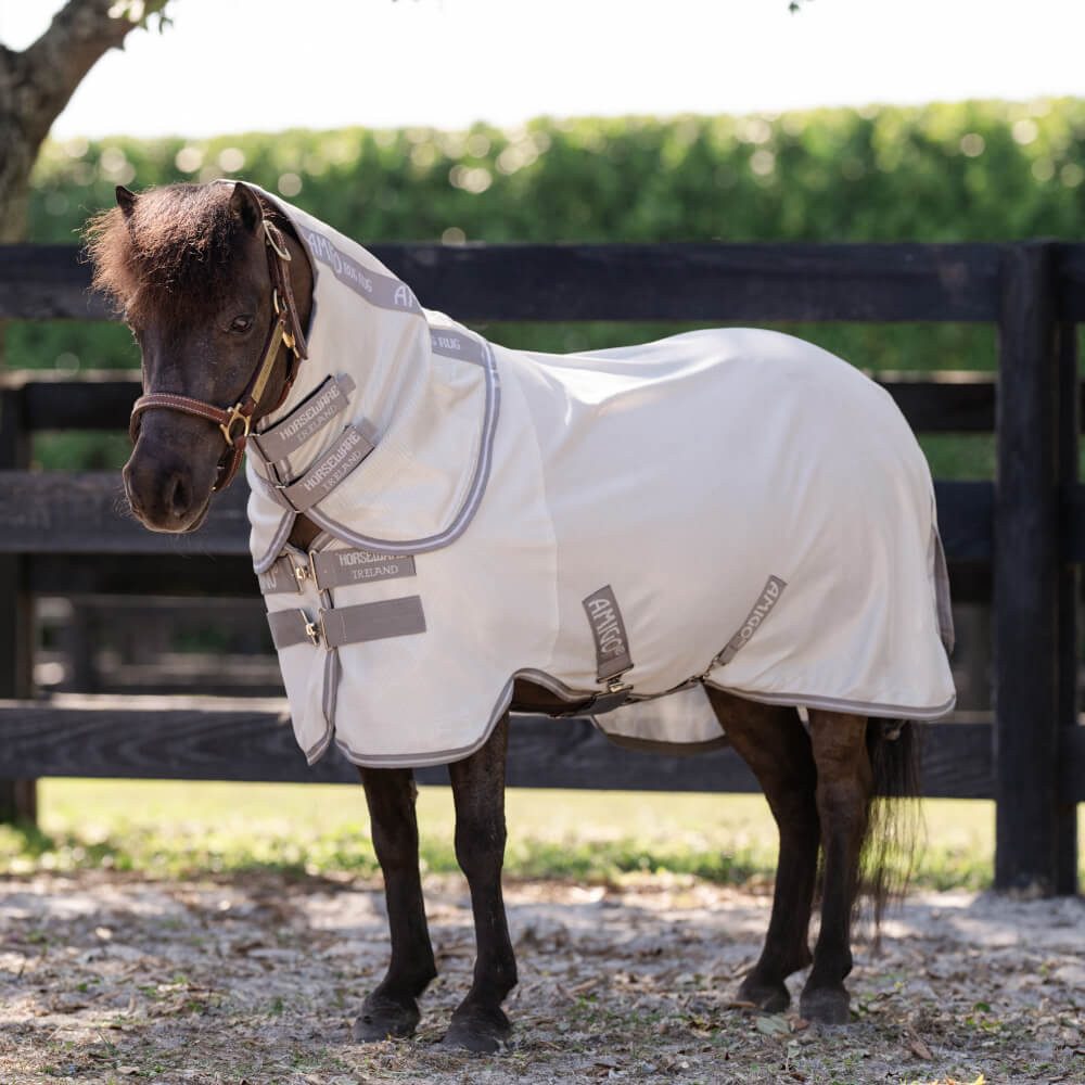 Die Amigo Bug Rug ist speziell für Miniaturpferde und Miniponys geschnitten. Dein „Mini“ ist ideal vor lästigen Plagegeistern geschützt. Auch im Halsbereich, denn die Decke hat ein abnehmbares Halsteil inklusive.