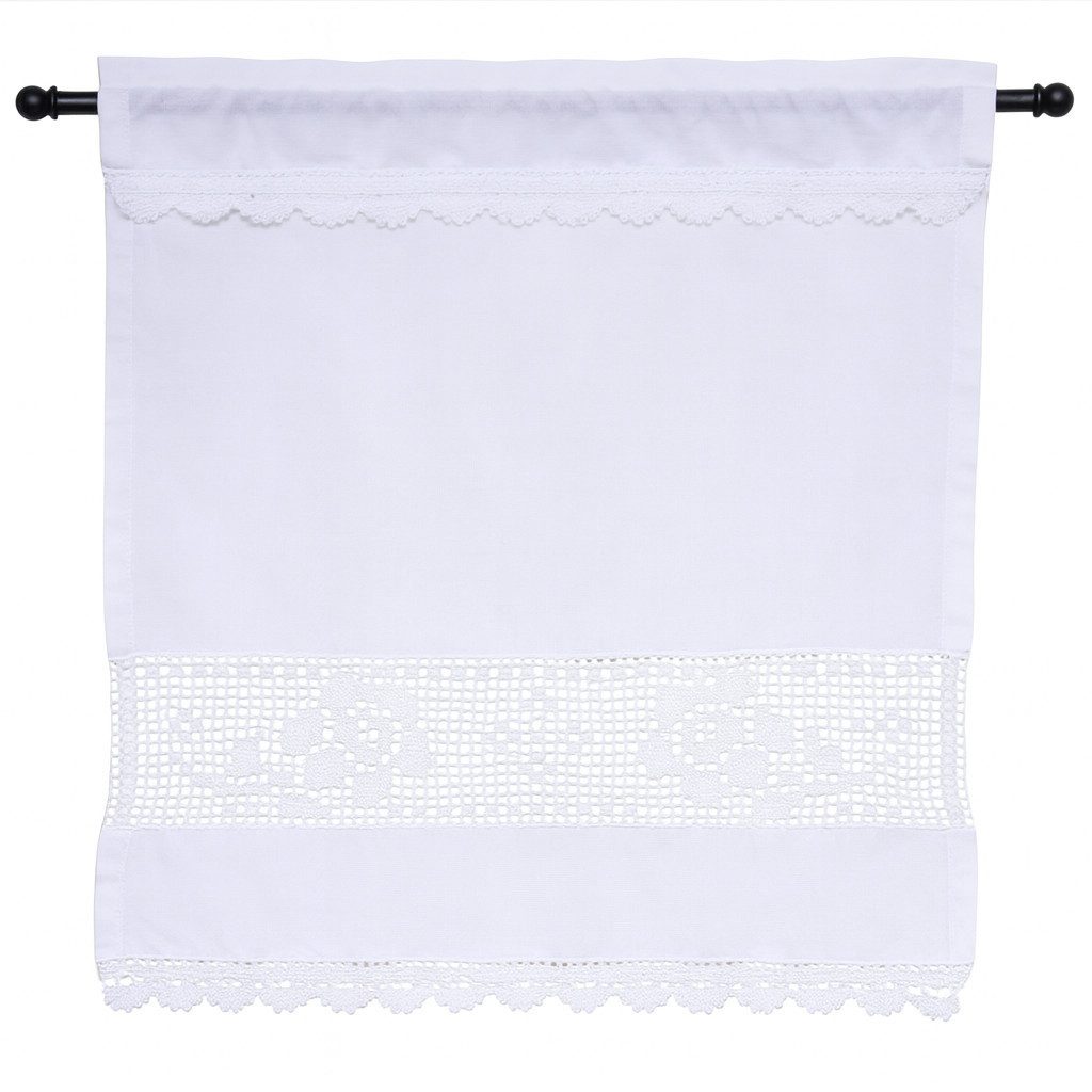 Der stilvolle Querbehang aus der Kollektion von Hossner verleiht jedem Raum eine charmante, romantische Note. Gefertigt aus halbtransparentem Stoff aus 100% Baumwolle in Weiß, sorgt er für eine helle und freundliche Atmosphäre.