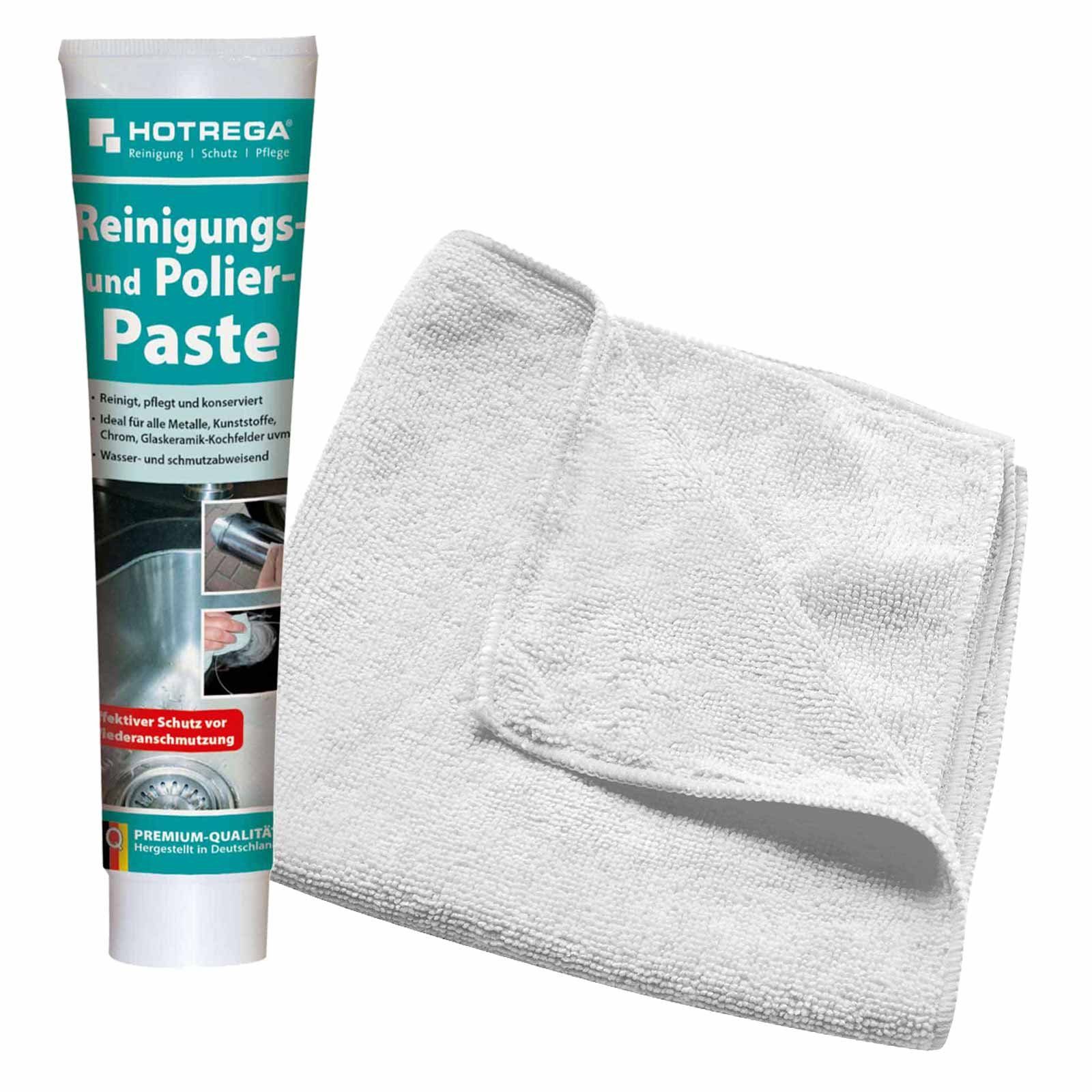 Beim Auspolieren sorgt die Polierpaste für eine streifen- und schlierenfreie Oberfläche. Durch eine spezielle Pflegekombination mit Abperleffekt werden die Oberflächen über einen längeren Zeitraum vor Korrosion, Anlaufen, Fingerabdrücken und allgemeiner Wiederanschmutzung geschützt. Die Paste eignet sich optimal zum Polieren von Metallen, wie Edelstahl als auch für Kunststoffe.