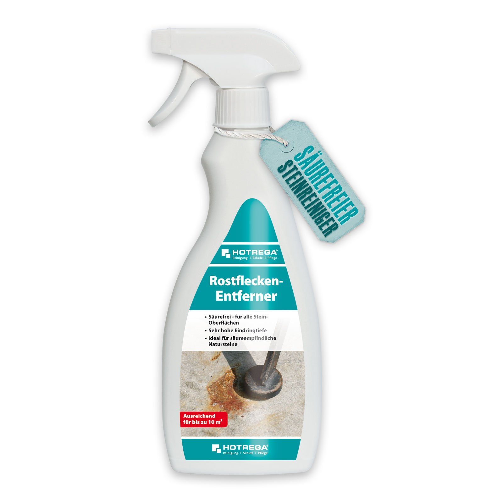 Entfernt schonend und zuverlässig selbst tief eingezogene Rostablagerungen, die z.B. durch eisenhaltige Dünger, Gartenmöbel und Werkzeuge aus Metall, Heizungsleckagen, tropfende Wasserhähne o.ä. entstanden sind.