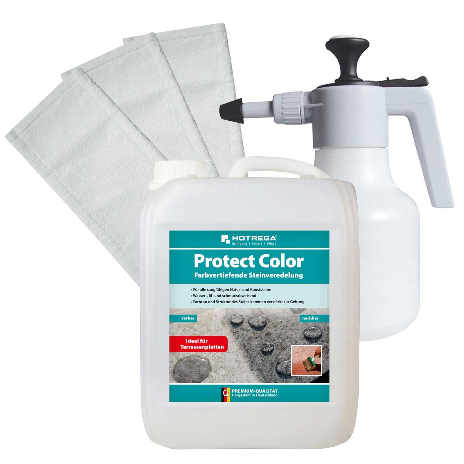 Steinimprägnierung Protect Color farbvertiefend 5LEnthält: Naphtha (Erdöl), mit Wasserstoff behandelte schwere. Grundsätzlich ist dieses Produkt vor der Anwendung an verdeckter Stelle auf Verträglichkeit zu prüfen. Bei unsachgemäßer Handhabung erlischt jegliche Haftung für eventuelle Schäden. EUH066 Wiederholter Kontakt kann zu spröder oder rissiger Haut führen.H226 Flüssigkeit und Dampf entzündbar. H304 Kann bei Verschlucken und Eindringen in die Atemwege tödlich sein. H336 Kann Schläfrigkeit und Benommenheit verursachen. P101 Ist ärztlicher Rat erforderlich, Verpackung oder Kennzeichnungsetikett bereithalten. P102 Darf nicht in die Hände von Kindern gelangen. P210 Von Hitze, heißen Oberflächen, Funken, offenen Flammen und anderen Zündquellen fernhalten. Nicht rauchen. P280 Schutzhandschuhe/Schutzkleidung/Augenschutz/Gesichtsschutz tragen. P301+P310 BEI VERSCHLUCKEN: Sofort GIFTINFORMATIONSZENTRUM/ Arzt anrufen. P303+P361+P353 BEI BERÜHRUNG MIT DER HAUT (oder dem Haar): Все kontaminierten Kleidungsstücke sofort ausziehen. Haut mit Wasser abwaschen [oder duschen].P331 KEIN Erbrechen herbeiführen. P405 Unter Verschluss aufbewahren. P501 Inhalt/Behälter der Problemabfallentsorgung zuführen. Gefahr
