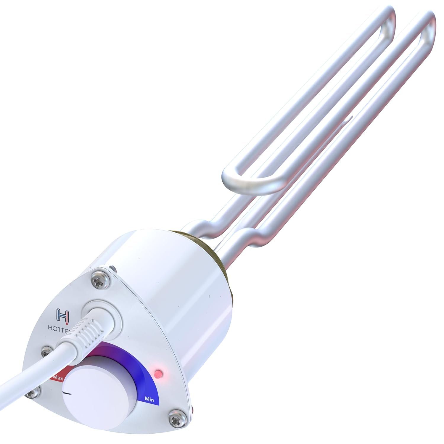 Das Gerät besteht aus einem soliden Metallgehäuse, einem zuverlässigen Cotherm-Thermostat und einer Messingblende zum einfachen Einbau in den Tank. Außerdem bietet er eine stufenlose Wassertemperaturregelung im Bereich von 5–65°C.