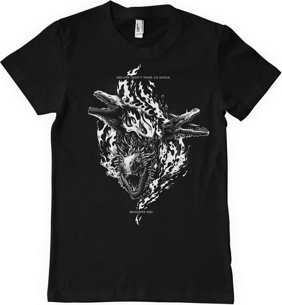 Das House Of The Dragon T-Shirt "Dreams Didn't Make Us Kings" ist ein Must-Have für alle Fans der erfolgreichen Serie. Das hochwertige Material und der bequeme Schnitt machen dieses Shirt zu einem echten Hingucker. Der coole Aufdruck mit dem markanten Schriftzug sorgt für einen lässigen Look und lässt dich wie ein echter König fühlen. Mit diesem Shirt setzt du ein Statement und zeigst deine Verbundenheit zur House Of The Dragon-Serie. Egal ob beim gemütlichen Serienabend zu Hause oder beim Treffen mit Freunden - mit diesem T-Shirt bist du immer perfekt gestylt. Die gute Verarbeitung und die hochwertigen Materialien garantieren dir zudem eine lange Freude an diesem Kleidungsstück. Hol dir jetzt das House Of The Dragon T-Shirt "Dreams Didn't Make Us Kings" und zeige deine Leidenschaft für die epische Serie. Mit diesem Shirt bist du nicht nur topmodisch gekleidet, sondern zeigst auch deine Liebe zur fantastischen Welt von House Of The Dragon. Ein absolutes Must-Have für alle Fans und Serienliebhaber!