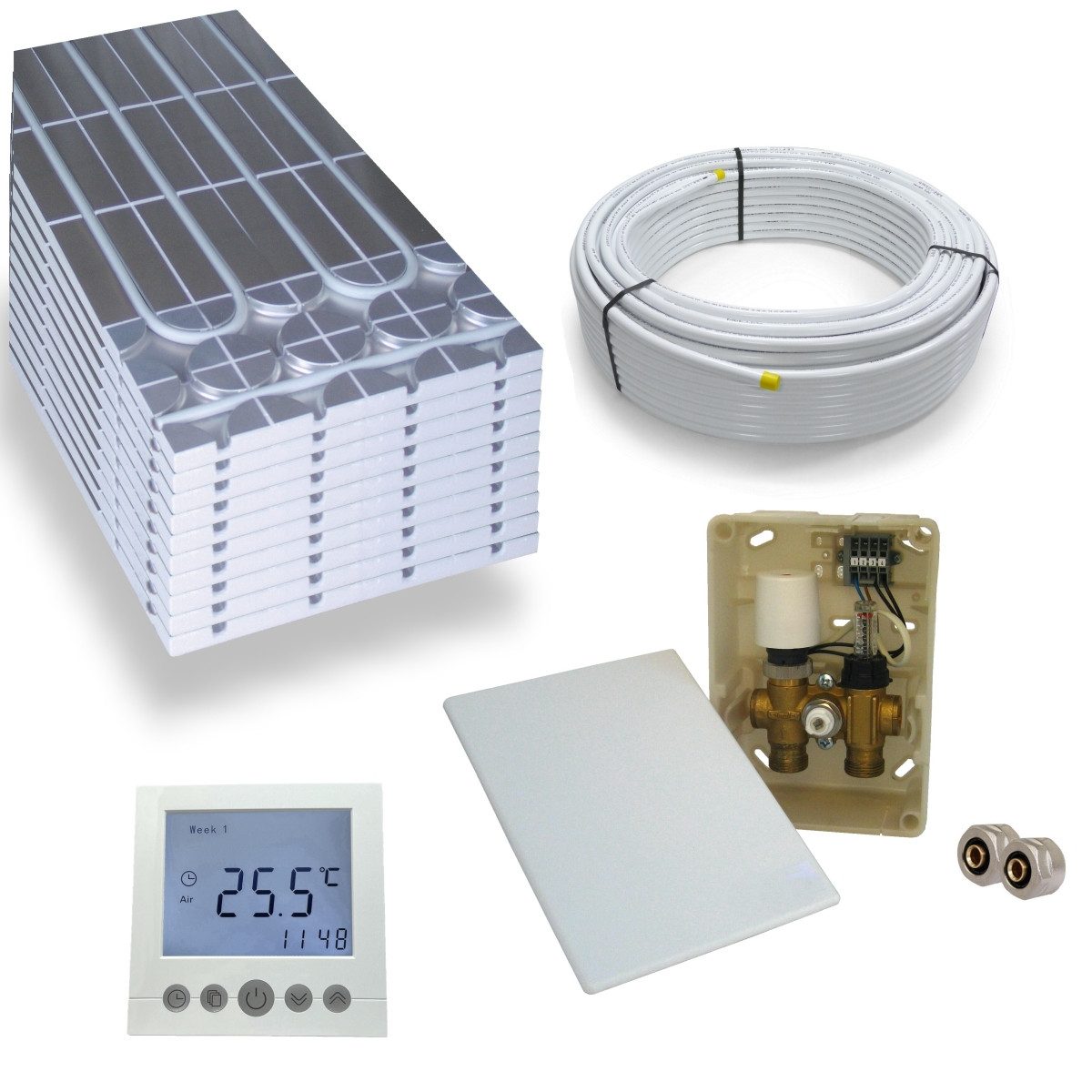 Praktische Komplett-Sets in 5 oder 10 m² mit Systemplatten, Alu-Verbundrohr und Thermostat für Boden- und Raumtemperatur. Die Fußbodenheizung ist wartungsfrei, was bedeutet, dass Sie für viele Jahre Wärme und Komfort genießen können. Durch die geringe Einbauhöhe von nur 30 mm ist der Heizung auch bei nachträglichen Renovierungsarbeiten leicht einsetzbar.