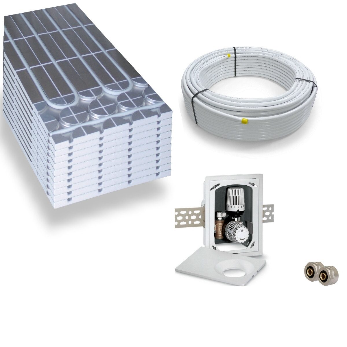 Praktische Komplett-Sets in 5 oder 10 m² mit Systemplatten, Alu-Verbundrohr und Thermostat für Boden- und Raumtemperatur. Die Fußbodenheizung ist wartungsfrei, was bedeutet, dass Sie für viele Jahre Wärme und Komfort genießen können. Durch die geringe Einbauhöhe von nur 30 mm ist der Heizung auch bei nachträglichen Renovierungsarbeiten leicht einsetzbar.