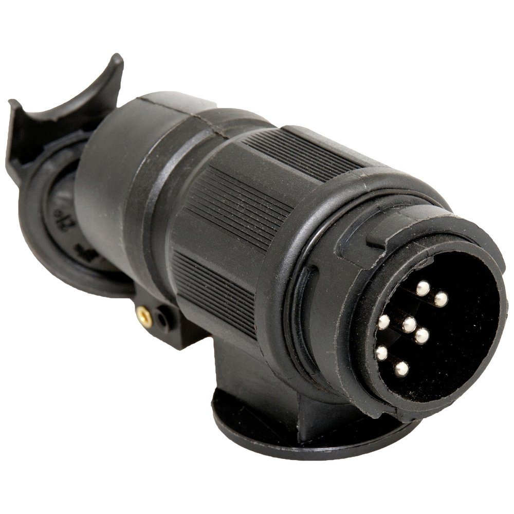 Nach DIN ISO 1724 und 11446. Verbindung ohne Zwischenkabel von einer 13-poligen Steckdose zu einem 7-poligen Stecker. Material Kunststoff, Kontakte vernickelt - Spannung 12V
