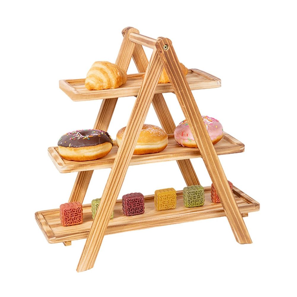 Hochwertiges Material: Dieses Serviertablett ist aus hochwertigem Holz gefertigt und verfügt über eine glatte Oberfläche und eine elegante Holzmaserung, die die Ästhetik Ihres Dessertdisplays verbessert und gleichzeitig Haltbarkeit und Stabilität gewährleistet