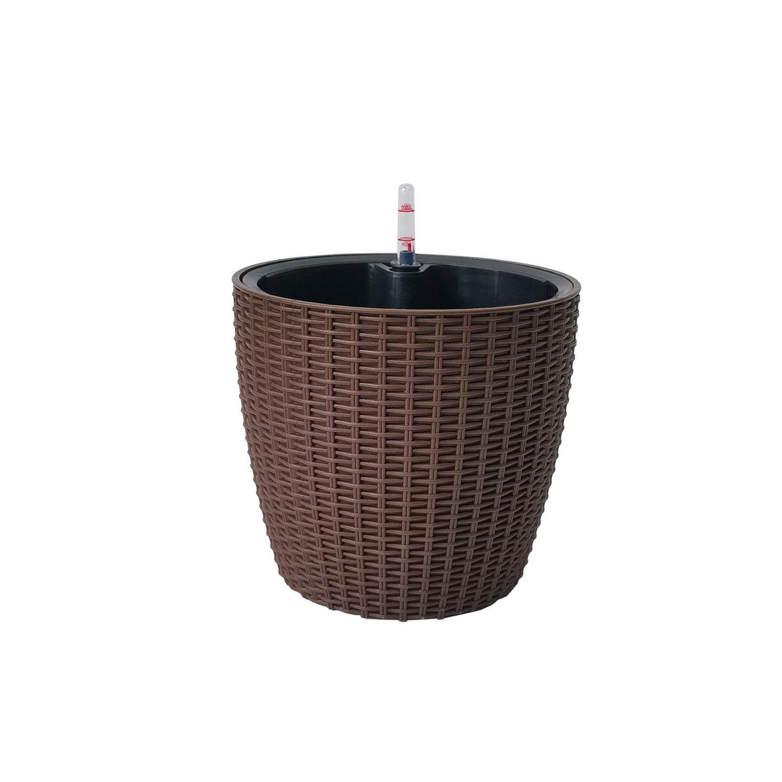 Der Blumentopf Nessa Hydro aus robustem Kunststoff besticht durch seine geflochtene Optik und setzt, bestückt mit Ihren Lieblingsblumen oder Grünpflanzen, im Innen- und Außenbereich besondere Akzente. Sollten Sie zudem mal über mehrere Tage abwesend sein, können sich Ihre Pflanzen dank integriertem Wasserspeicher am Boden selbst bewässern. Der Wasserstandsanzeiger zeigt Ihnen, wann Sie das Reservoir wieder auffüllen müssen. Die Pflanzgefäße der Serie Nessa Hydro sind in verschiedenen Größen und Farben erhältlich. Maße Ø/H 21,5 x 20 cm