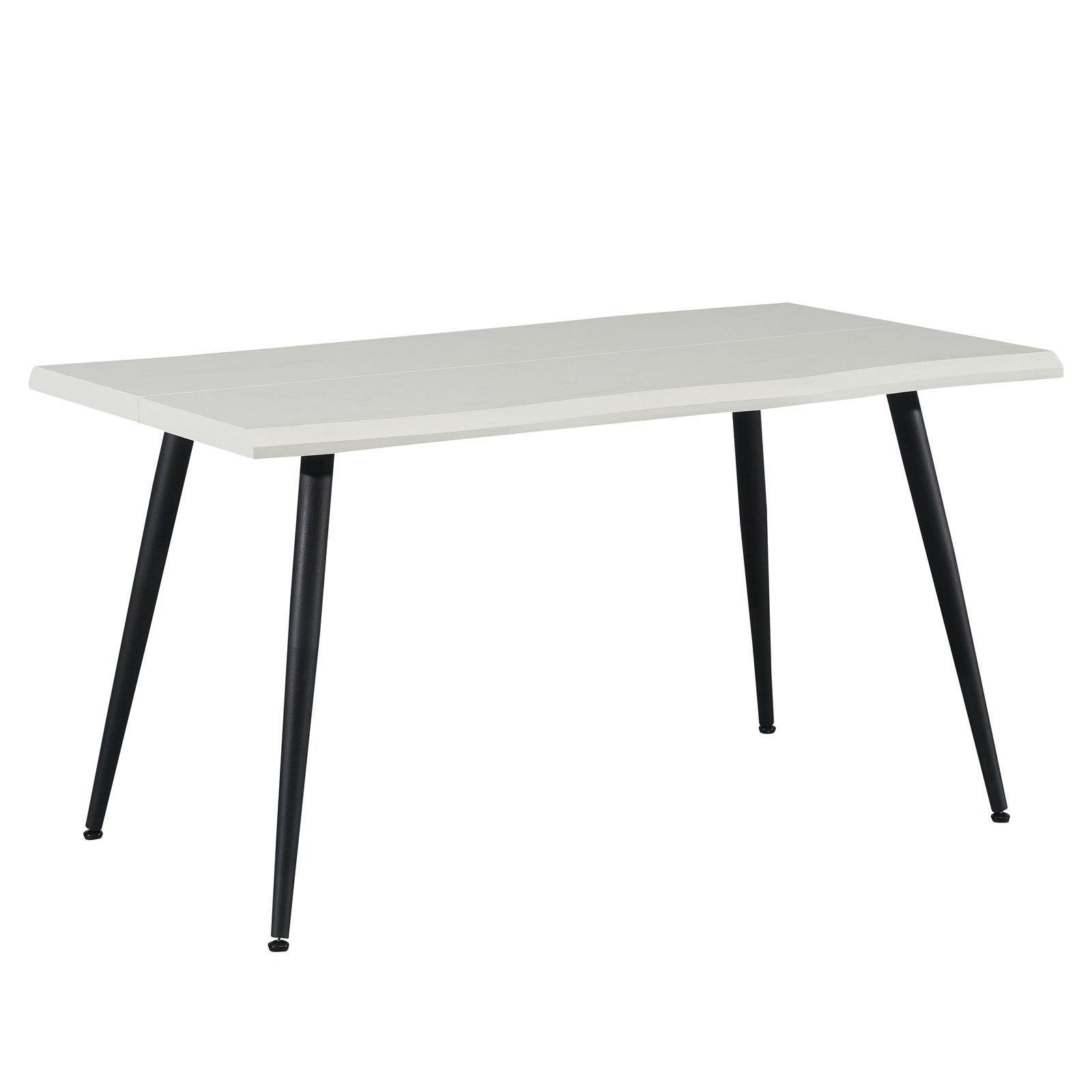 Mit diesem besonderen Esstisch holen Sie sich einen echten Hingucker nach Hause. Die Tischplatte ist aus MDF in verschiedenen Farben. Das Gestell ist in mattem Schwarz. Maße: (B/H/T) 80 x 76 x 140 cm, Stärke Tischplatte: 3,8 cm, Tischbein Ø 5 cm, Belastbar bis 50 kg, Material: Tischplatte MDF, Tischbeine pulverbeschichtetes Metall