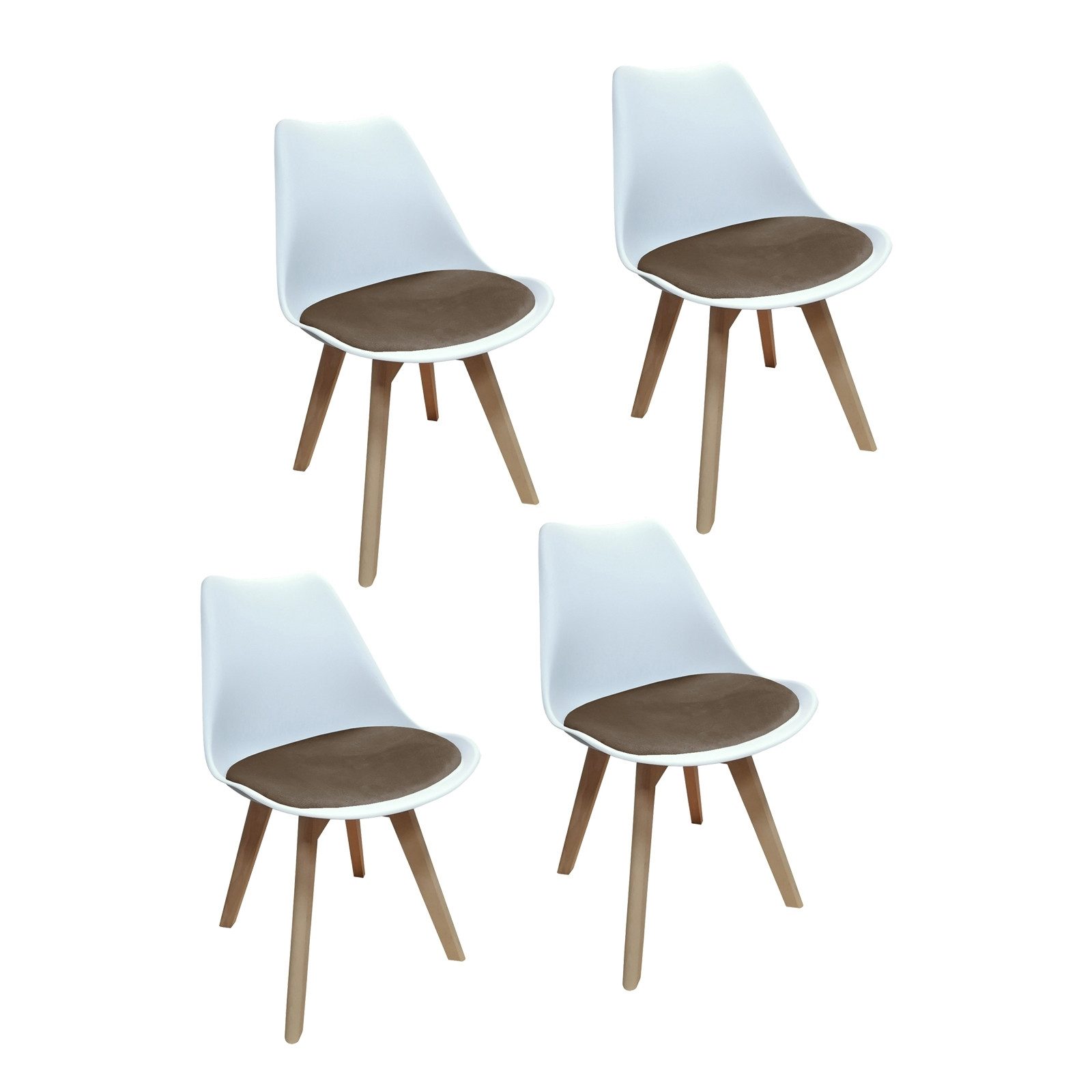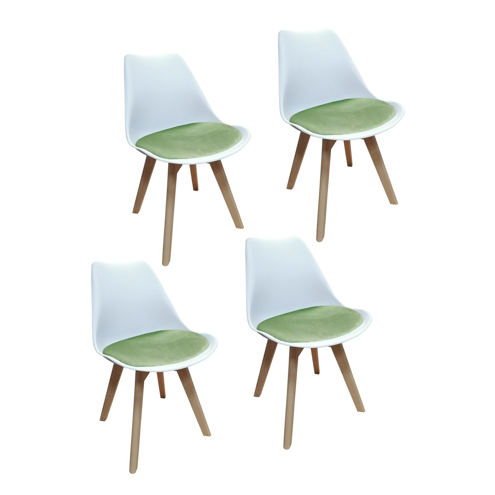 Verleihen Sie Ihrem Wohn- oder Essbereich einen modernen Look mit diesen stilvollen Esszimmerstühlen im beliebten skandinavischen Design. Die ergonomisch geformte Sitzschale aus robustem Kunststoff sorgt für bequemen Sitzkomfort, während das weich gepolsterte Sitzkissen in einen attraktiven Farbakzent setzt. Die stabilen Beine aus Holz runden das zeitlose Design ab. Maße und Details Gesamtmaße: B/H/T: 48 x 82 x 42 cm Sitzhöhe: 44 cm Farbe Sitzschale: Weiß Farbe Sitzpolster: in trendiger Farbe Gestell: Holzbeine (naturfarben)