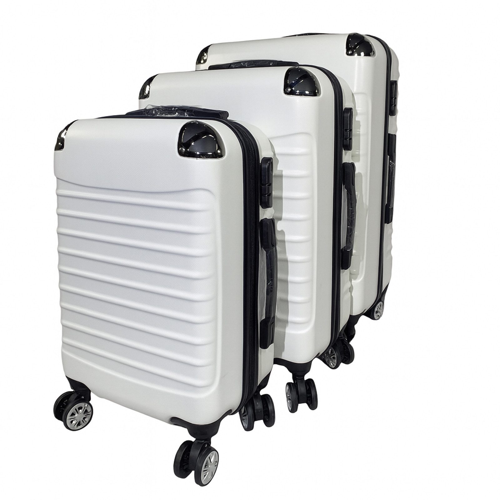 Produktdetails: Größen: 20" (Handgepäck) B/H/T 38 x 56 x 23 cm, Volumen 40 Liter 24" (Mittel) B/H/T 45 x 67 x 26 cm, Volumen 70 Liter 28" (Groß) B/H/T 50 x 75 x 30 cm, Volumen 100 Liter Material: Hartschale aus ABS – stoßfest und langlebig 4x Doppelrollen für 360° Beweglichkeit Teleskopgriff – ausziehbar und ergonomisch Sicheres Zahlenschloss Leichtgewicht-Konstruktion