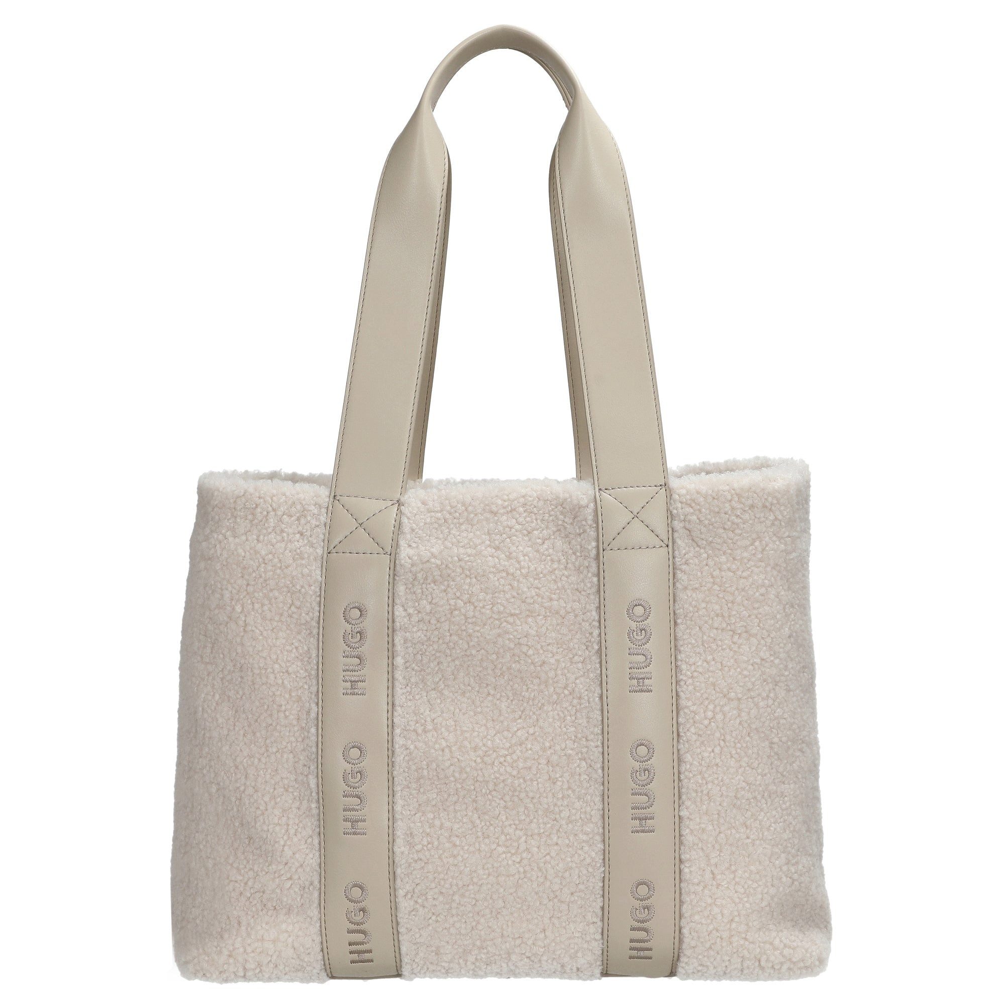 Die HUGO Women's Becky SH Tote in natural begeistert mit ihrem weichen Shearling-Imitat, das jedem Look eine elegante und zugleich moderne Note verleiht. Dieses stylische Accessoire vereint Komfort und Design und ist perfekt für modebewusste Frauen, die Wert auf hochwertige Details legen. * Weiches Shearling-Imitat – sorgt für ein angenehmes Tragegefühl und verleiht der Tasche eine luxuriöse Ausstrahlung * Synthetisch beschichtete Textilriemen mit feinen Logo-Akzenten – setzen modische Highlights und garantieren Langlebigkeit * Großzügiges Hauptfach – bietet viel Platz für alle wichtigen Essentials des Alltags * Praktische Innentasche mit Reißverschluss – schützt Wertsachen sicher und sorgt für Ordnung im Inneren * Silberfarbene Metallapplikationen – runden das edle Design stilvoll ab und unterstreichen den hochwertigen Charakter * Zwei stabile Tragegriffe – ermöglichen einen bequemen Halt und flexible Tragemöglichkeiten Ob im Büro, beim Shopping oder bei besonderen Anlässen – die HUGO Tote Bag in natural ist ein vielseitiger Begleiter, der sich mühelos zu zahlreichen Outfits kombinieren lässt.
