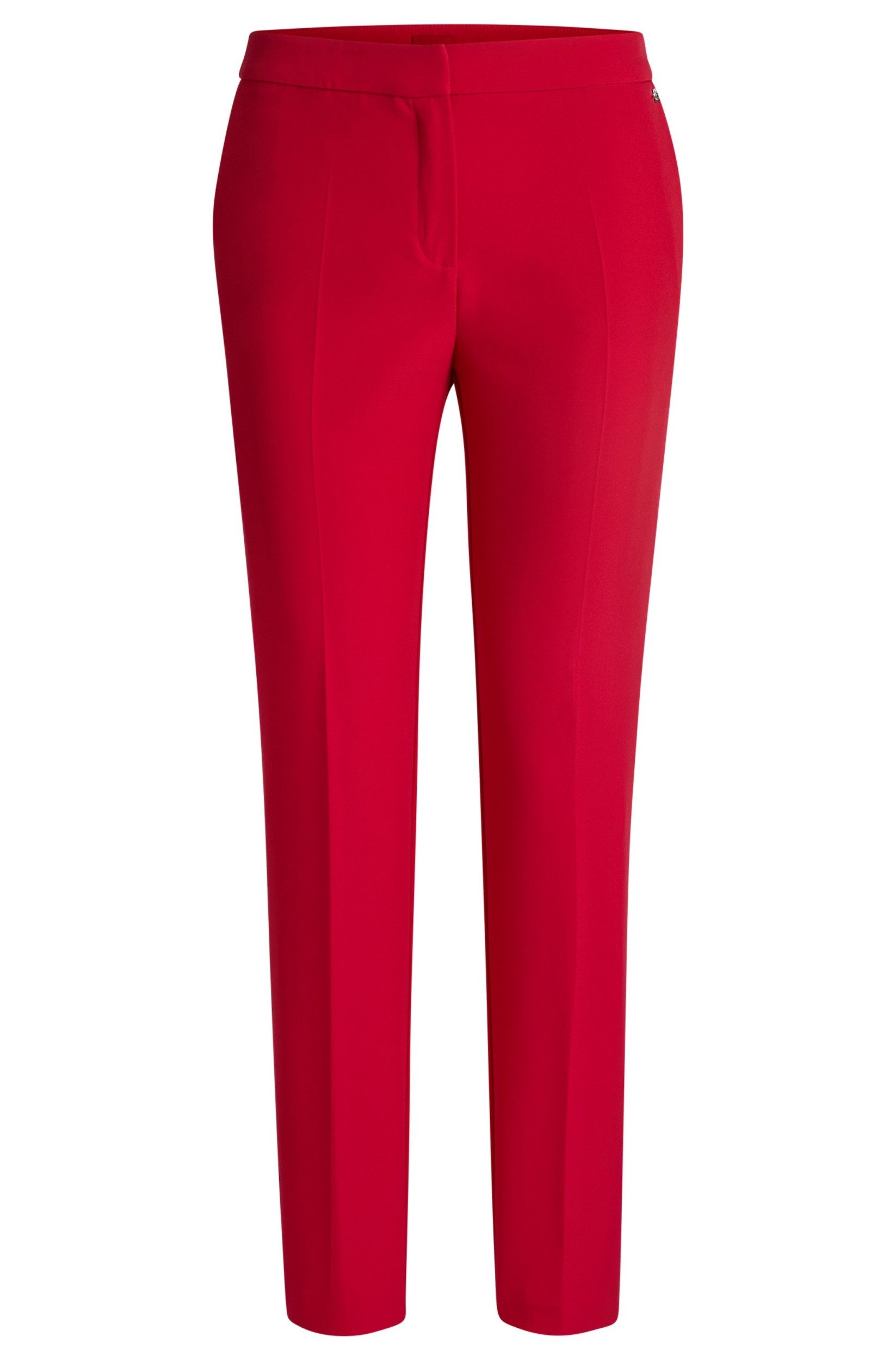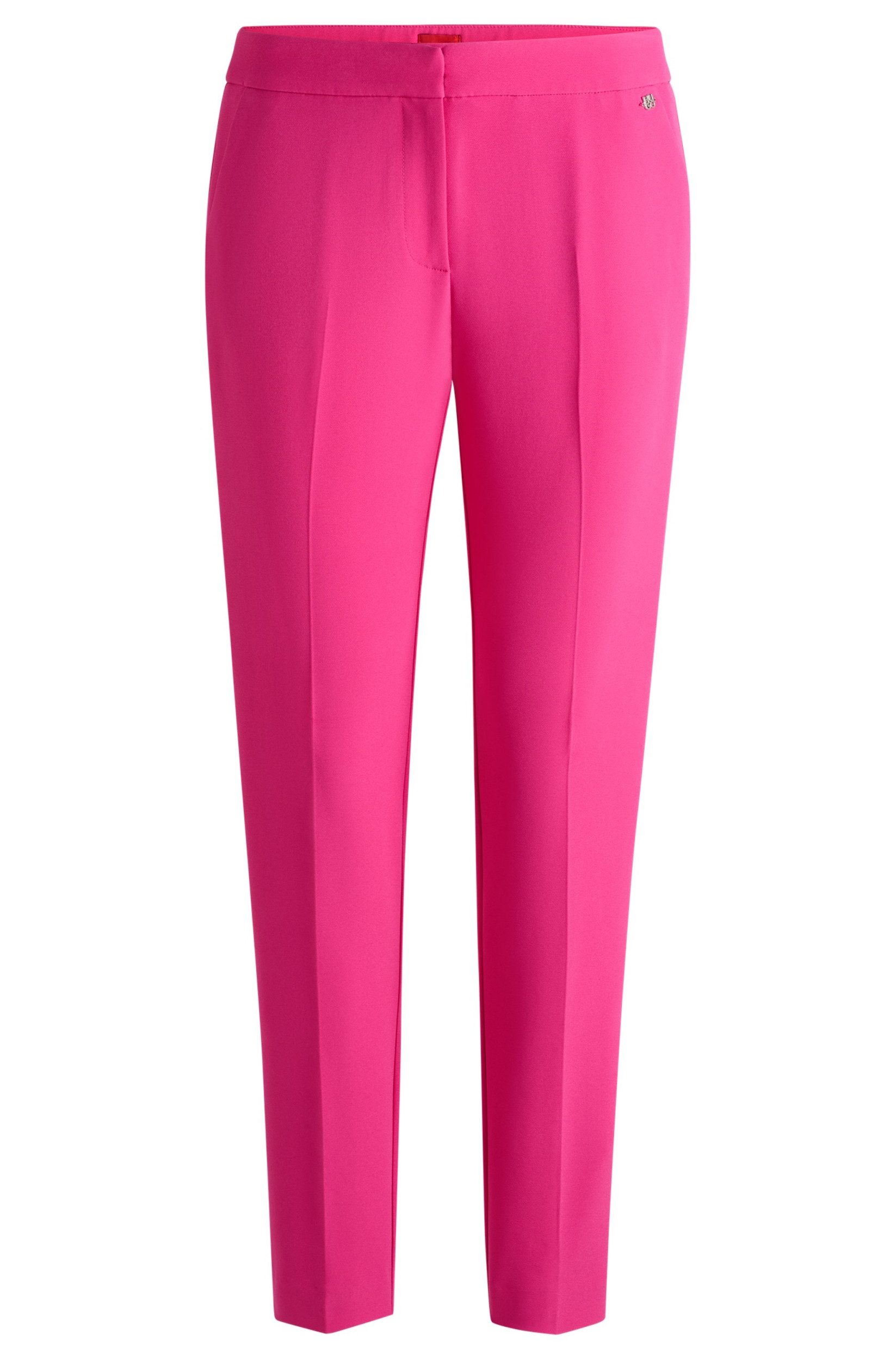 Verliebe Dich in den Komfort und Stil der Hose Hagonia von HUGOStell Dir vor, Du könntest eine Hose tragen, die nicht nur super bequem ist, sondern auch in jeder Situation perfekt aussieht. Die Hose Hagonia von HUGO macht genau das möglich! Mit ihrem schicken, unifarbenen Design und der schmalen Passform, schmiegt sie sich ideal an Deine Figur an und betont Deine Silhouette auf elegante Weise.Perfekt für jeden AnlassOb im Büro, beim entspannten Stadtbummel oder auf einer Abendveranstaltung – diese Hose ist ein echter Allrounder. Der mittlere Bund sorgt für einen angenehmen Sitz, der weder zu hoch noch zu tief ist. Dank des elastischen Material-Mixes aus 88% Polyester und 12% Elasthan bietet die Hose Hagonia eine hervorragende Bewegungsfreiheit und passt sich jeder Deiner Aktivitäten an.Stilvolle DetailsEin kleines, aber feines Detail ist die Logo-Niete, die diskret am Bund angebracht ist und dem Design einen authentischen HUGO-Touch verleiht. Die knöchellange Hose lässt sich hervorragend mit verschiedenen Schuhen kombinieren – von Sneakers bis hin zu High Heels.Die Hose Hagonia ist nicht nur ein Kleidungsstück, sondern ein Statement, das Deinen individuellen Stil unterstreicht. Fühl Dich frei, fühl Dich stylisch, fühl Dich wie Du selbst – jeden Tag. Vielseitig einsetzbar und für jeden Anlass geeignet Elastischer Material-Mix für optimalen Tragekomfort Schmale Passform, die Deine Figur elegant betont Stilvolles, unifarbenes Design mit dezenter Logo-Niete Perfekte Bundhöhe und knöchellange Длина