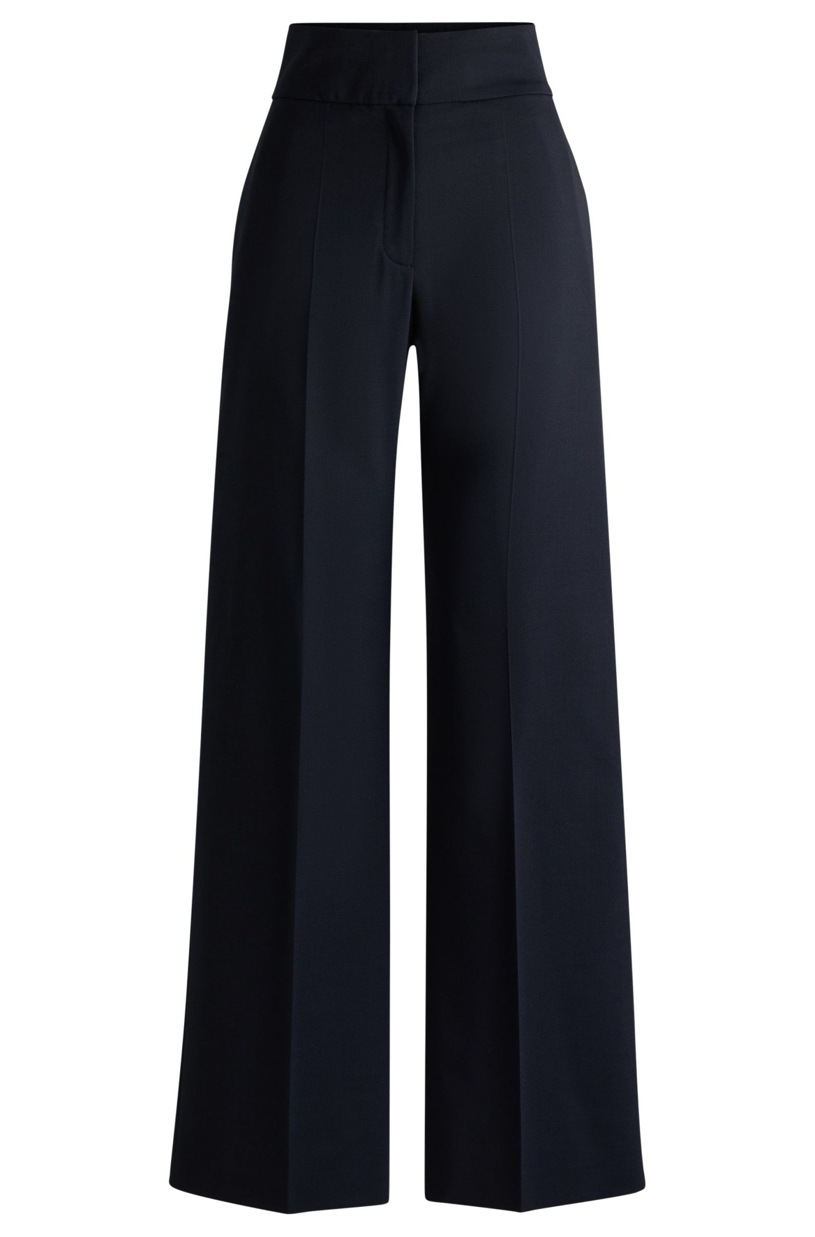 Entdecke die Regular-Fit Hose Himia, eine elegante Wahl für besondere Anlässe oder alltägliche Eleganz. Das Design ist unifarben und lässt sich somit leicht mit anderen Kleidungsstücken kombinieren. Die Hose ist knöchellang und schmeichelt jeder Figur. Mit ihrer hohen Taille betont sie die Körpermitte und schafft eine ansprechende Silhouette.Die Regular-Fit Hose Himia zeichnet sich durch ihren ausgestellten Beinverlauf aus. Dies verleiht der Hose einen Hauch von Vintage-Chic und macht sie gleichzeitig modern und zeitgemäß. Das verleiht jedem Look eine einzigartige Note und sorgt für ein auffälliges, aber dennoch geschmackvolles Erscheinungsbild.Ein weiterer Vorteil dieser Hose ist der elastische Material-Mix mit Schurwoll-Anteil. Dies garantiert einen hohen Tragekomfort und sorgt dafür, dass die Hose den ganzen Tag über bequem sitzt.Die Regular-Fit Hose Himia ist eine stilvolle und vielseitige Ergänzung für jede Garderobe. Sie verbindet klassischen Chic mit modernem Komfort und ist die perfekte Wahl für alle, die nach einer Hose suchen, die sowohl stilvoll als auch bequem ist. Elegante Regular-Fit Hose mit hohem Bund Unifarbenes Design für vielseitige Kombinationsmöglichkeiten Ausgestellter Beinverlauf für einen einzigartigen Look Elastischer Material-Mix mit Schurwoll-Anteil für hohen Tragekomfort