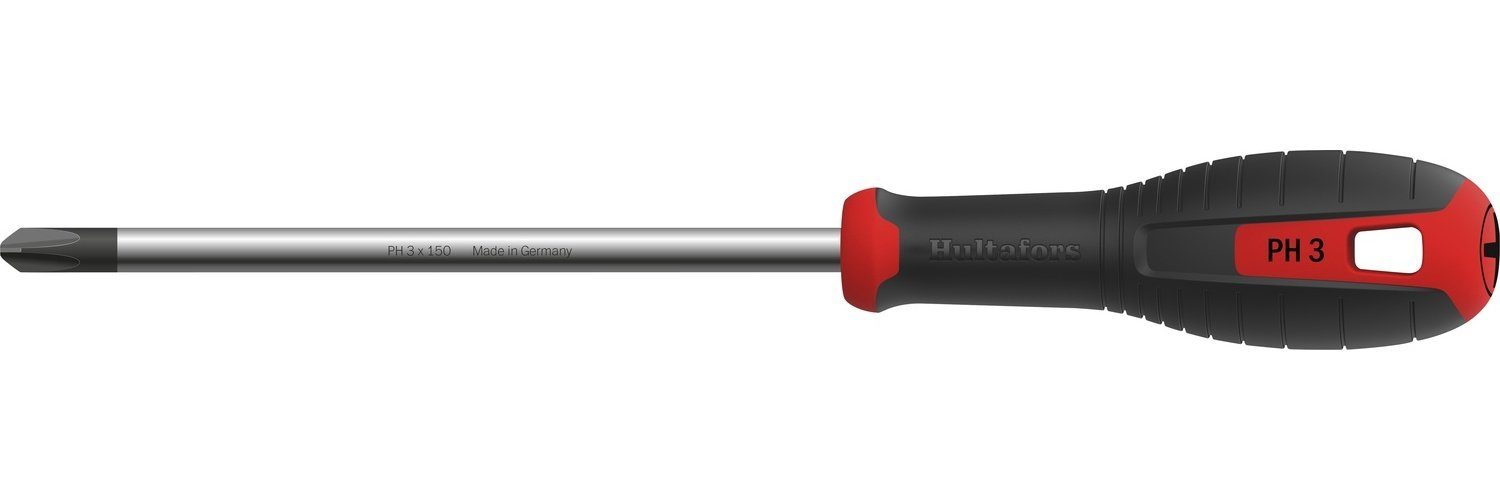 Kreuzschlitzschraubendreher für den professionellen Einsatz, gemeinsam mit Handwerkern entwickelt. Ergonomisches Design für optimalen Komfort. Der lange, gummibeschichtete Griff gewährleistet Griffigkeit für Präzision und maximale Kraftübertragung. Der Griff besteht aus langlebigem PPC-Kunststoff mit einer Beschichtung aus alterungsbeständigem und leicht zu greifendem Gummi. Die dauerhafte Kennzeichnung von Typ und Размер auf der Oberseite sowie die Farbe des Griffs erleichtern dem Benutzer die Auswahl des richtigen Schraubendrehers. Die Klinge ist aus hochwertigem, gehärtetem Stahl für eine lange Lebensdauer gefertigt. Der Griff des Schraubendrehers hat ein Loch zum Aufhängen oder Sichern. Das Design des Griffs verhindert das Abrollen des Schraubendrehers auf schrägen Flächen.