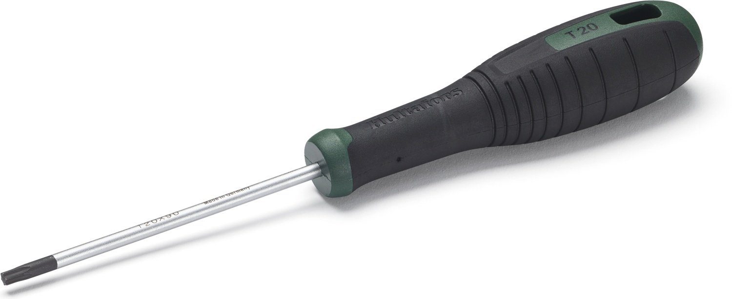 Torx®-Schraubendreher für den professionellen Einsatz, gemeinsam mit Handwerkern entwickelt. Ergonomisches Design für optimalen Komfort. Der lange, gummibeschichtete Griff gewährleistet Griffigkeit für Präzision und maximale Kraftübertragung. Der Griff besteht aus langlebigem PPC-Kunststoff mit einer Beschichtung aus alterungsbeständigem und griffigem Gummi. Die dauerhafte Kennzeichnung von Typ und Размер auf der Oberseite sowie die Farbe des Griffs erleichtern dem Benutzer die Auswahl des richtigen Schraubendrehers. Die Klinge ist aus hochwertigem, gehärtetem Stahl für eine lange Lebensdauer gefertigt. Der Griff des Schraubendrehers hat ein Loch zum Aufhängen oder Sichern. Das Design des Griffs verhindert das Abrollen des Schraubendrehers auf schrägen Flächen.