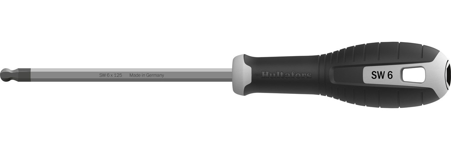 Sechskant-Kugelschlitz-Schraubendreher für den professionellen Einsatz, gemeinsam mit Handwerkern entwickelt. Ergonomisches Design für optimalen Komfort. Der lange, gummibeschichtete Griff gewährleistet Griffigkeit für Präzision und maximale Kraftübertragung. Der Griff besteht aus langlebigem PPC-Kunststoff mit einer Beschichtung aus alterungsbeständigem und leicht zu greifendem Gummi. Die dauerhafte Kennzeichnung von Typ und Размер auf der Oberseite sowie die Farbe des Griffs erleichtern dem Benutzer die Auswahl des richtigen Schraubendrehers. Die Klinge ist aus hochwertigem, gehärtetem Stahl für eine lange Lebensdauer gefertigt. Der Griff des Schraubendrehers hat ein Loch zum Aufhängen oder Sichern. Das Design des Griffs verhindert das Abrollen des Schraubendrehers auf schrägen Flächen.