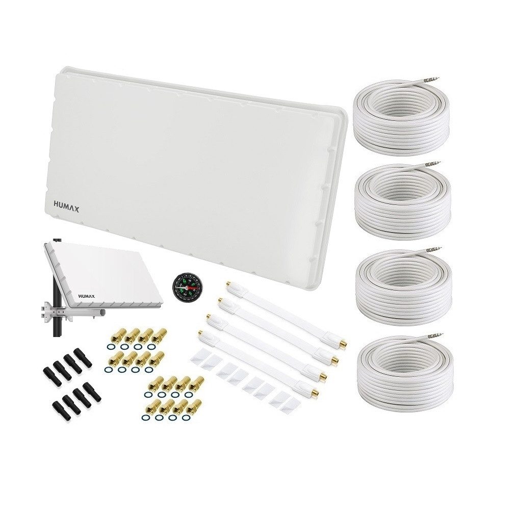 HUMAX Flat H39D4 SAT Flachantenne (für 4 Teilnehmer, mit Quad-LNB) - SAT Antenne flach mit Halterung für Wand oder Mast, ersetzt SAT Schüssel 60 cm, Weiß
