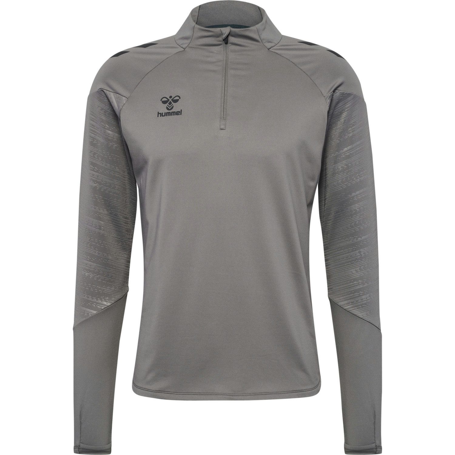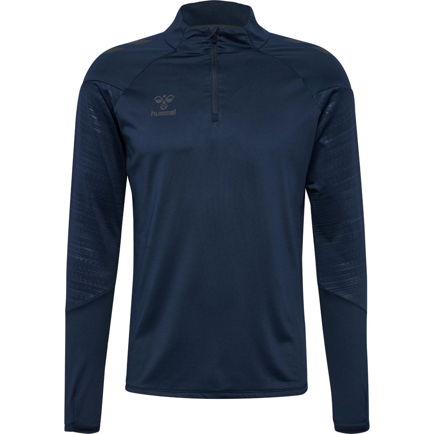 Hummel Herren Trainingsshirt PRO TRAINING HALF ZIP. Der hmlPRO TRAINING HALF ZIP ist aus recyceltem Polyester gefertigt und verfügt über einen halben Frontreißverschluss mit Reißverschlussabdeckung, um ein Scheuern am Kinn zu verhindern. Daumenlöcher an den Bündchen bieten zusätzliche Wärme und einen sicheren Sitz. Die BEECOOL-Technologie sorgt für Atmungsaktivität und schnelles Trocknen, während der integrierte Stretch für Flexibilität sorgt. hummel-Markendetails runden den Look ab. Material: 90% Polyester, 10% Elasthan.