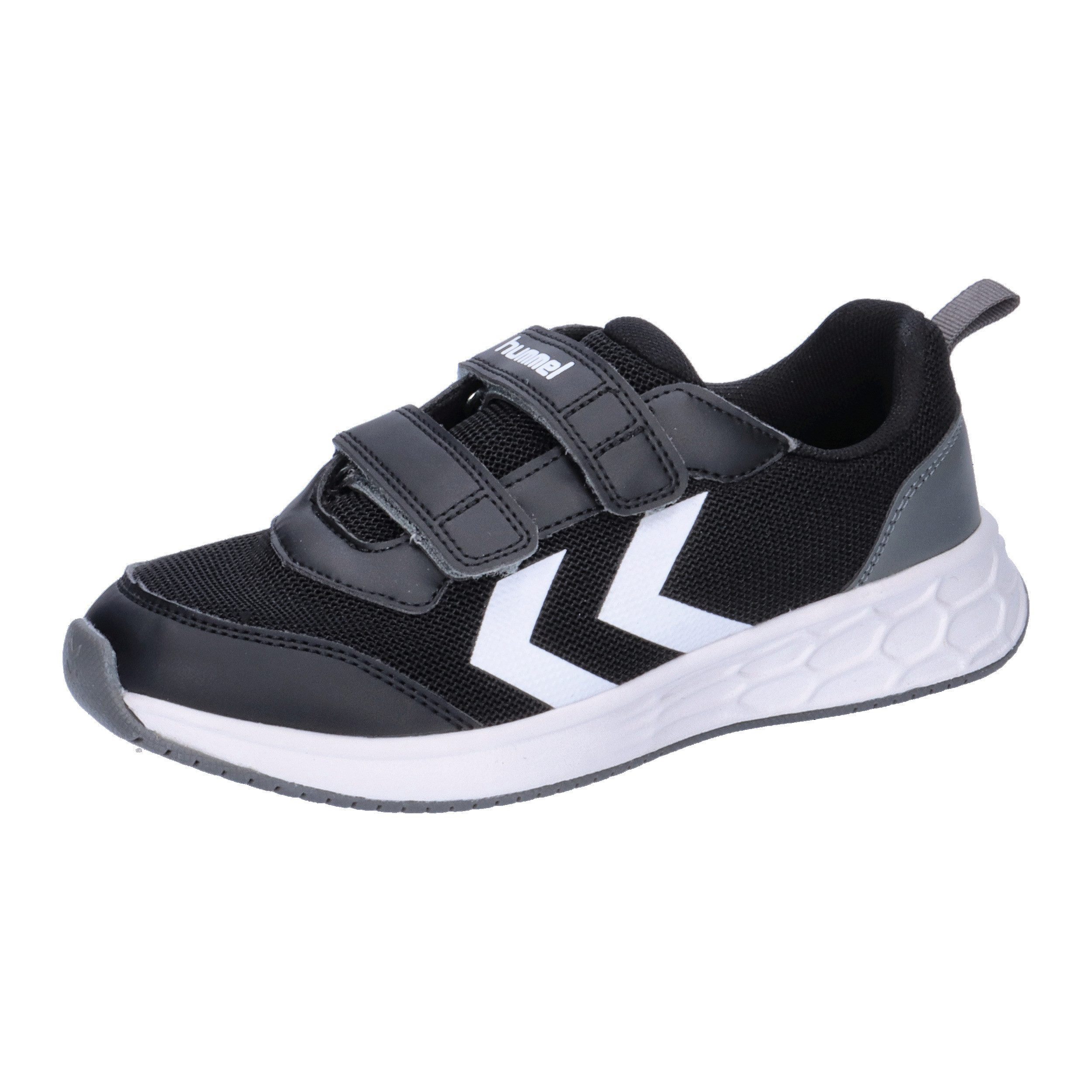 Hummel Kinder Sneaker TURBO RUN 1.0 JR. Der TURBO RUN 1.0 JR ist ein leichter Sneaker, der dank einem Obermaterial aus Mesh und PU Strapazierfähigkeit und Tragekomfort bietet. Die robuste EVA-Außensohle stärkt den Fuß deines Kindes beim Herumtoben und sorgt für die nötige Balance. Dieser Sneaker verfügt über zuschneidbare Klettriemen und eine Zuglasche an der Ferse. So sitzt er wie angegossen und kann schnell wieder ausgezogen werden. Der TURBO RUN 1.0 JR verfügt über eine nicht abfärbende Sohle und ein Design mit Hotmelt-Einsätzen sowie unseren charakteristischen Winkeln. Obermaterial: Textil, sonstiges Material. Futter und Decksohle: Textil. Laufsohle: sonstiges Material.