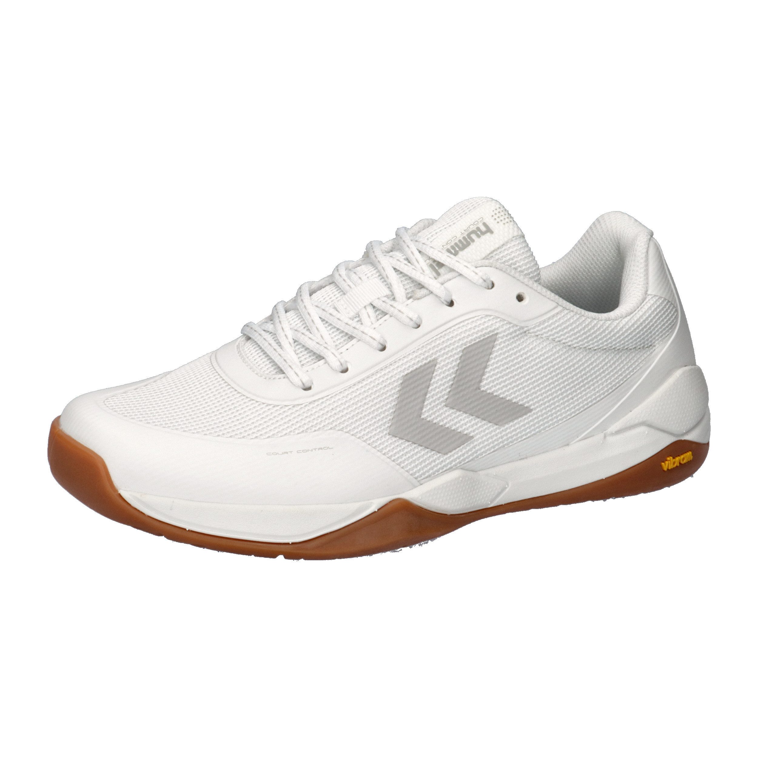 Hummel Unisex Tennisschuh COURT CONTROL. Der COURT CONTROL ist dank der leistungsstarken Gummilaufsohle von VIBRAM, die speziell für Performance auf Weltklasseniveau im Schlägersport entwickelt wurde, perfekt für Hartplätze geeignet. Diese hummel® Turnschuhe verfügen über eine LCS-Zwischensohle, die so konstruiert wurde, dass sie leicht ist, aber dennoch bei jedem Schritt hervorragende Energierückgabe, Abriebfestigkeit und Dämpfung bietet. Die Laufsohle mit spezieller Stützaussparung zeichnet sich durch Grip und Stabilität aus. Mit atmungsaktivem Mesh, einer gepolsterten Zunge und Hotmelt-TPU-Verstärkungen bremst dich dieser leichte Schuh auf dem Platz nicht und sorgt gleichzeitig für optimalen Komfort und Schutz. Das Memory-Schaum-Fußbett gewährleistet zusätzlichen Komfort, sodass du dein bestes Spiel spielen kannst. Obermaterial: Leder;Sonstiges Material. Futter und Decksohle: Textil. Laufsohle: Sonstiges Material.