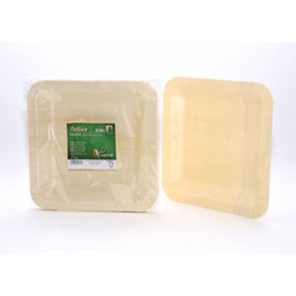 Einwegteller 10 Teller aus Pappelholz, 21,5 x 21,5 x 2cm, mit Einleger -SoPr -