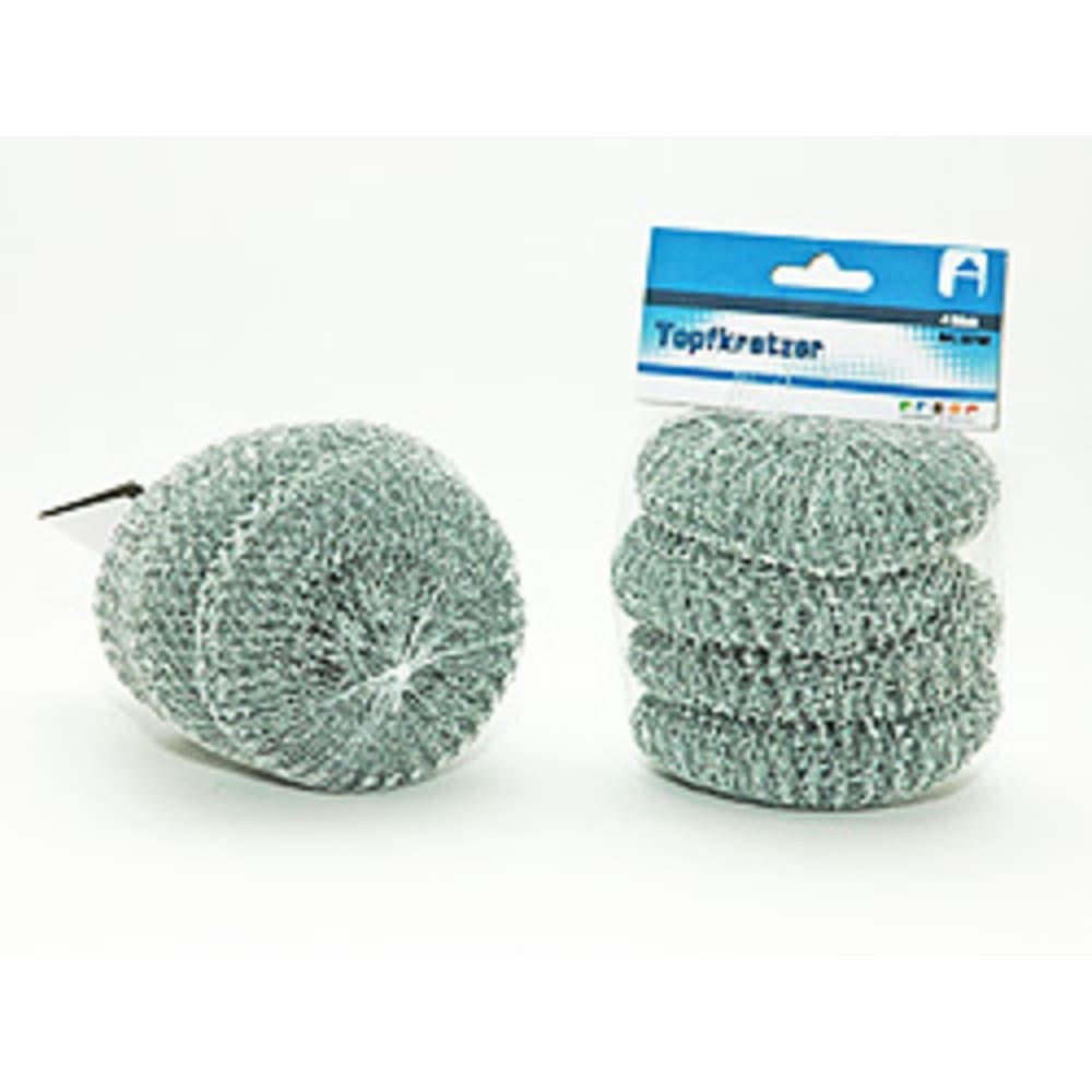 Unsere 4-teiligen **Metall-Topfkratzer** sind speziell entwickelt, um selbst die hartnäckigsten Speisereste und Verkrustungen mühelos zu beseitigen. Jeder Kratzer wiegt 20 g und bietet durch seine engmaschige Struktur eine hervorragende Reinigungsleistung, ohne dabei die Oberflächen Ihrer Kochutensilien zu beschädigen. Die Kratzer sind aus hochwertigem Metall gefertigt, das für seine Langlebigkeit und Widerstandsfähigkeit bekannt ist.