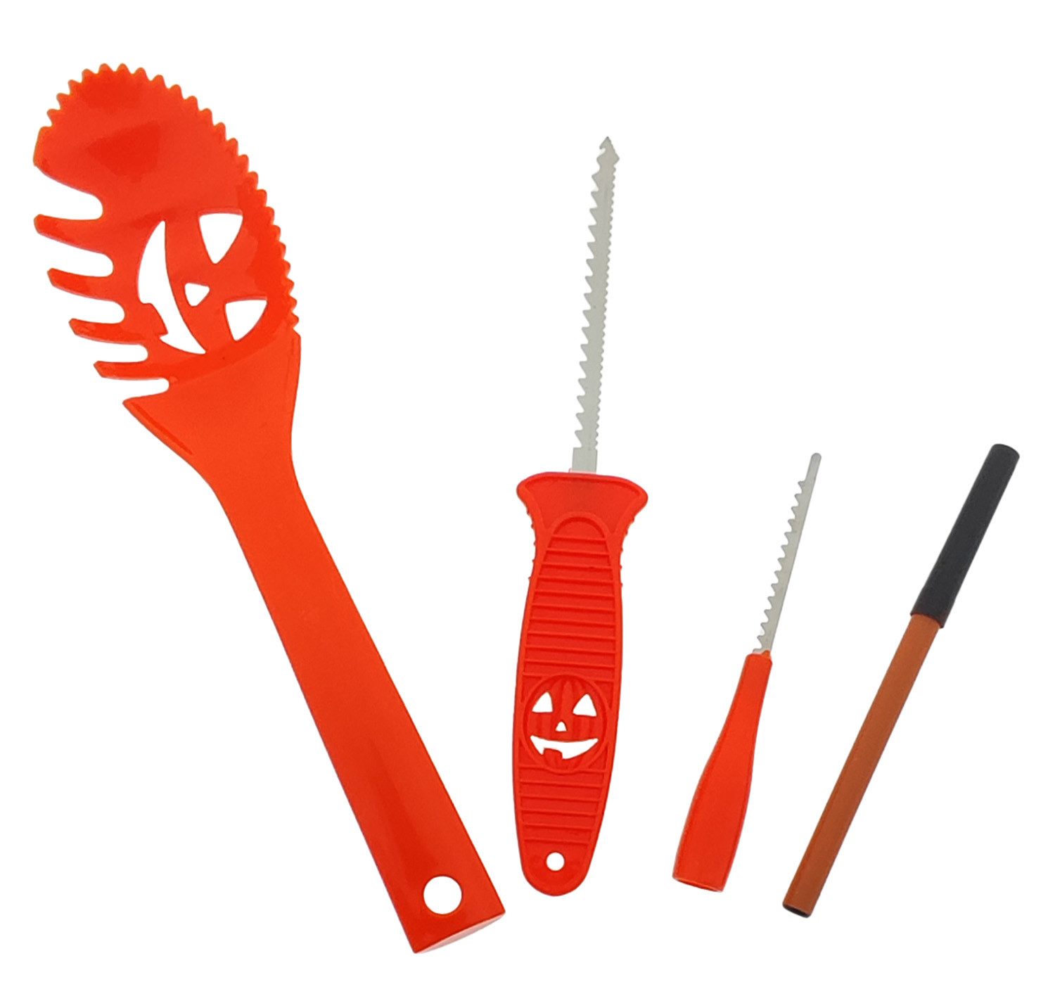 Zaubere gruselige Gesichter! Mit unserem 4-teiligen Kürbisschnitzset verleihst du deinem Kürbis ein schaurig schönes Gesicht. Ob gruselige Fratze oder lustige Figur – deiner Kreativität sind keine Grenzen gesetzt!