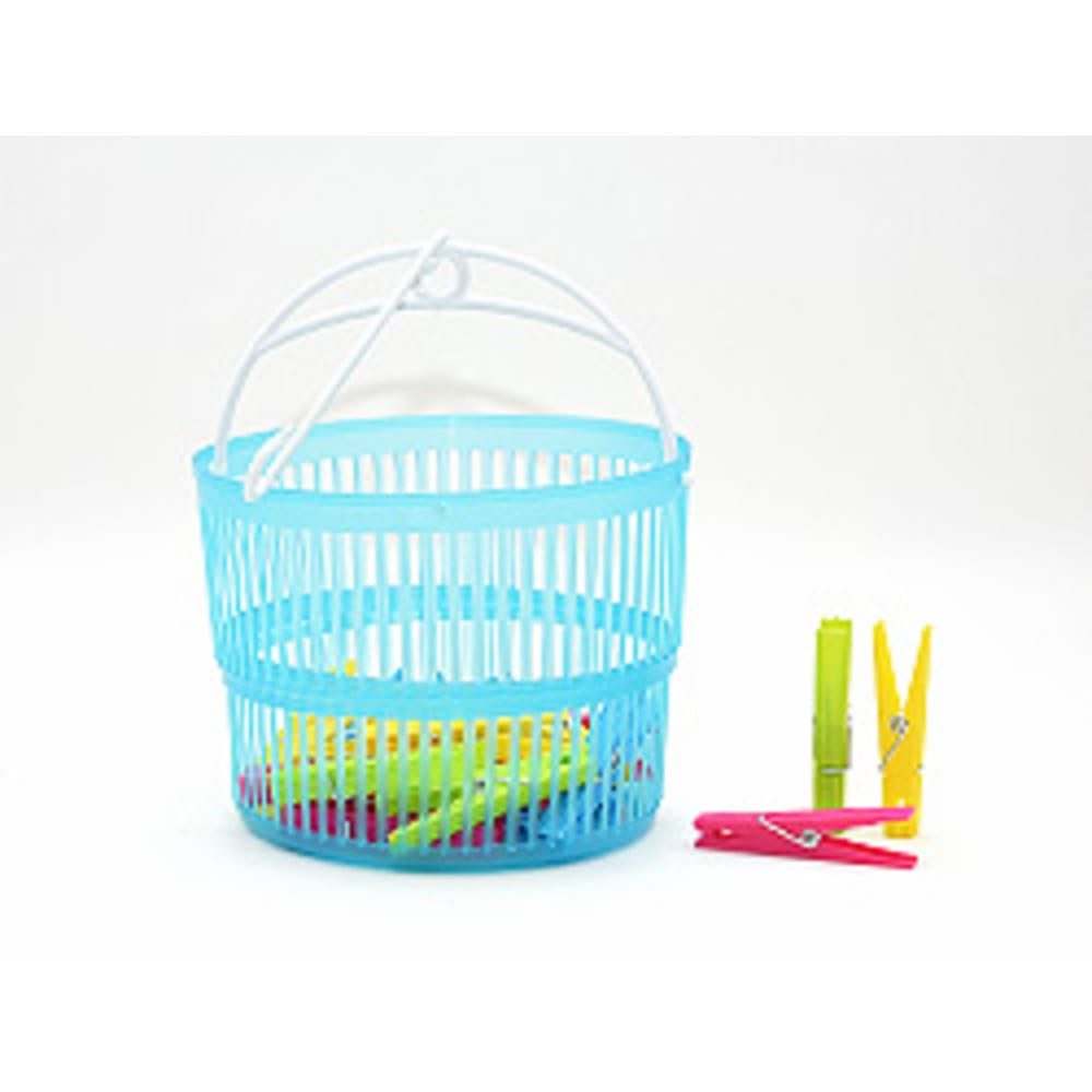 Der **Klammerkorb Ø 20 cm mit 24 Klammern** ist ein unverzichtbares Accessoire für jeden Haushalt. Mit einem Durchmesser von 20 cm und einer Höhe von 8,2 cm bietet dieser Korb ausreichend Platz, um Ihre Klammern ordentlich aufzubewahren. Die mitgelieferten 24 Klammern, jede 8,2 x 1,2 cm groß, sind perfekt für alle Arten von Kleidung geeignet. Der Korb besteht aus robustem Kunststoff, der langlebig und leicht zu reinigen ist.