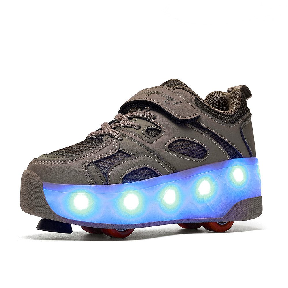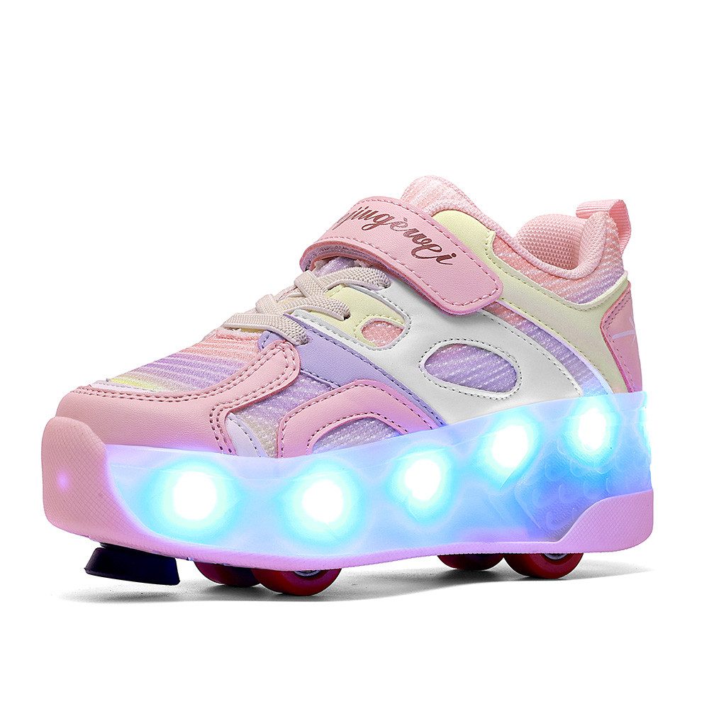 Rollschuhe sind mehr als nur Schuhe – sie sind Sneaker, Rollschuhe und Hingucker in einem! Mit einem einzigen Knopfdruck lassen sich die Rollen automatisch ein- und ausfahren, sodass Ihr Kind blitzschnell zwischen normalen Sneakers und Rollschuhen wechseln kann. Ausgestattet mit 4 stabilen Rollen, einer integrierten Bremse und bunten LED-Leuchten sorgen diese Skateschuhe für grenzenlosen Fahrspaß und maximale Sicherheit – perfekt für Schule, Freizeit und Abenteuer mit Freunden! Ob beim Skaten im Park, Spielen auf dem Schulhof oder Spazierengehen am Abend – die leuchtenden LED-Rollschuhe machen jeden Schritt zum Highlight. Kinder werden die Kombination aus stylischem Design, hohem Tragekomfort und innovativer Technik lieben.