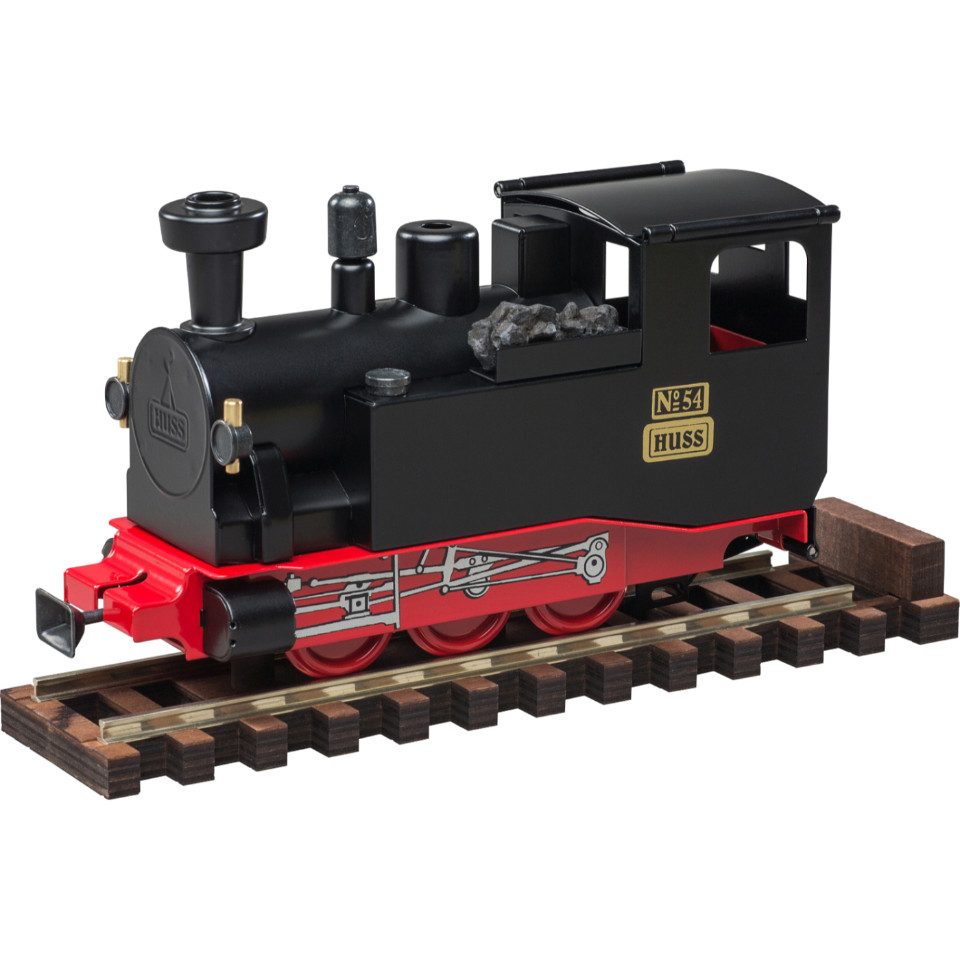 1 Duft-Dampflok, 2 Tiegel mit gebogenen Rand, 1 Tiegel mit Puffer und Räucherkerzenaufhängung, 1 Tiegel für Räucherkerzen hängend oder stehend, 1 Tiegell ohne Rand mit Schieber für Teelicht, 1 Teelicht, 1 Probepäckchen Weihrauch,1 Probepäckchen Duftharz Weihrauch, 1 Probepäckchen Dampflokduft, 1 Heft mit Fabrikationsnummer, 1 Feuerzeug