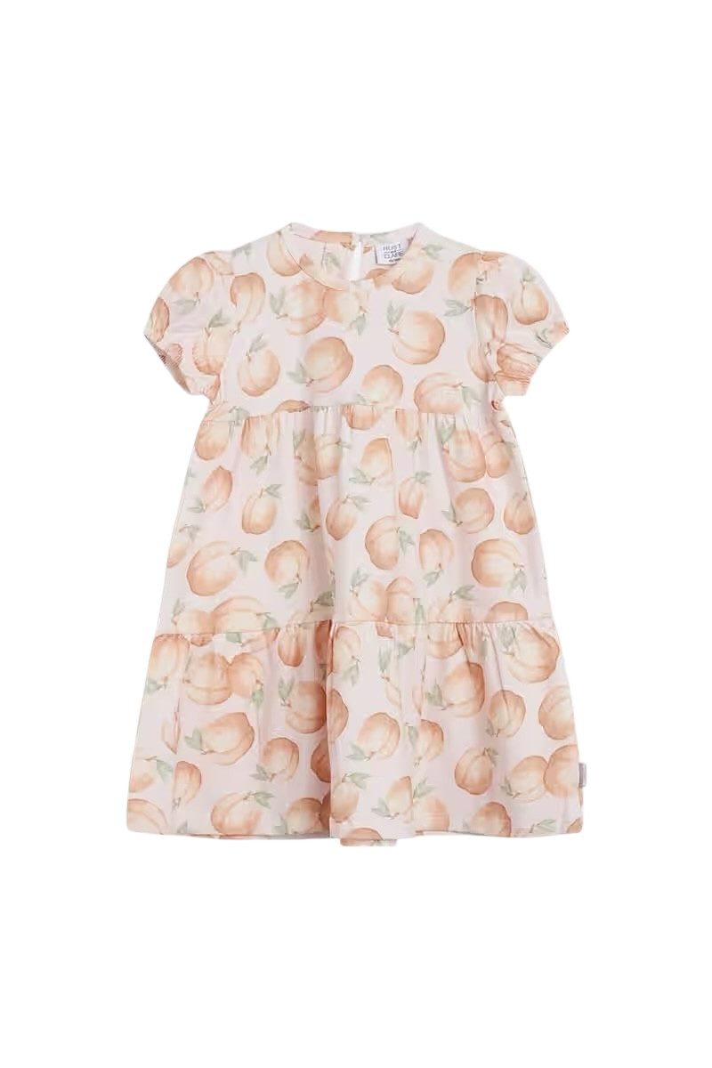 Sommerkleid für Mädchen aus Bio-Baumwolle – Modell Donya von Hust & Claire. Das A-Linien-Kleid Donya von Hust & Claire ist das perfekte Sommeroutfit für stilbewusste Mädchen. Mit seinem verspielten Pfirsich-Alloverprint in zarten Pastellfarben begeistert dieses Kleid im Alltag wie auch zu besonderen Anlässen. Der leichte Stoff aus Bio-Baumwolle fühlt sich angenehm weich an und ist ideal für empfindliche Kinderhaut. Die kurzen Rüschenärmel und der schwingende, lockere Schnitt bieten Bewegungsfreiheit und Komfort – perfekt für warme Tage, den Sommerurlaub oder Gartenfeste. Ein praktischer Reißverschluss am Rücken erleichtert das An- und Ausziehen. Produktdetails: Modell: Donya von Hust & Claire Farbe: Skin Shalk (hell mit Pfirsich-Allovermuster) Schnitt: A-Linie, luftig & locker Ärmel: Kurzarm mit Rüschen Material: 100 % Bio-Baumwolle (GOTS-zertifiziert) Pflegeleicht & maschinenwaschbar Rückenreißverschluss