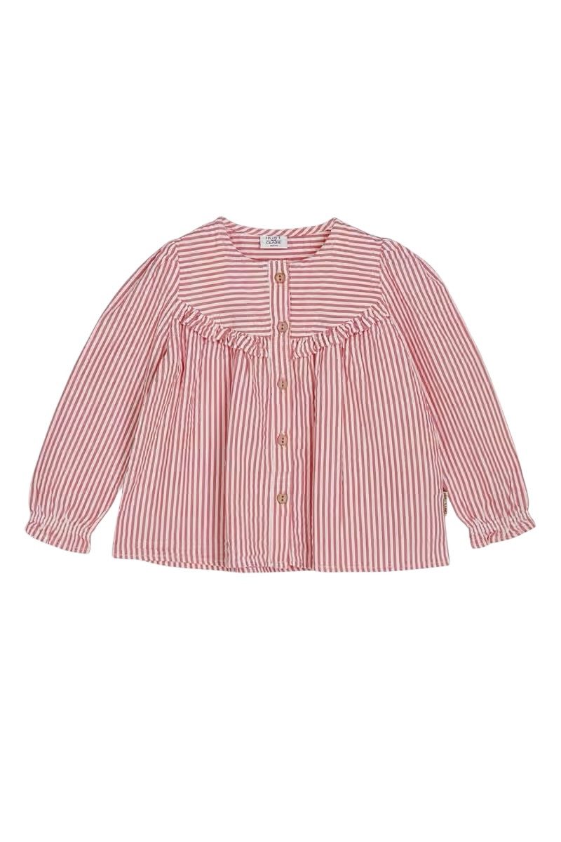 HUST & CLAIRE Langarmbluse Teresita – Gestreifte Mädchenbluse in Paprika mit Rüschen. Die HUST & CLAIRE Langarmbluse Teresita ist ein bezauberndes Kleidungsstück für Mädchen, das mit stilvollen Details überzeugt. Das feine Streifenmuster in Paprika und Weiß sorgt für einen klassischen Look, während die zarten Rüschen-Applikationen an der Brustpartie eine verspielte Note verleihen. Dank der weichen Baumwollqualität bietet die Bluse höchsten Tragekomfort und ist ideal für den Alltag oder festliche Anlässe. Die durchgehende Knopfleiste aus Holzknöpfen auf der Vorderseite erleichtert das An- und Ausziehen. Entdecke die HUST & CLAIRE Langarmbluse Teresita in Paprika! Die elegante Kinderbluse mit feinen Streifen, Rüschen-Details und Knopfleiste ist perfekt für stilvolle Looks. Stilvolles Design mit Streifen und Rüschen Perfekt für den Alltag und besondere Anlässe
