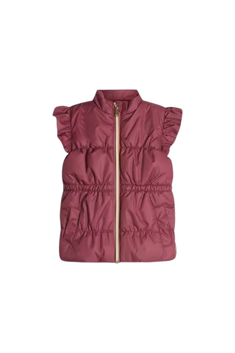 HUST & CLAIRE – Steppweste EMILY für Kinder. Die HUST & CLAIRE Steppweste EMILY für Mädchen überzeugt mit modischen Rüschen, leichter Wattierung und bequemer Passform. Ideal für Frühling & Herbst. Die Steppweste EMILY von HUST & CLAIRE ist die perfekte Übergangsweste für modebewusste Mädchen. In sanftem Roséton und mit charmanten Rüschen an den Schultern bringt diese ärmellose Weste skandinavischen Stil in den Kinderkleiderschrank. Dank der leichten Wattierung bietet sie angenehme Wärme an kühlen Frühjahrs- und Herbsttagen, ohne dabei einzuengen. Der durchgehende Reißverschluss macht das An- und Ausziehen kinderleicht, während elastische Einsätze für optimalen Sitz sorgen.
