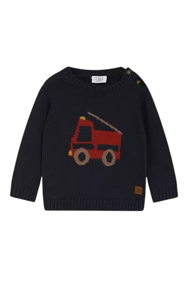HUST & CLAIRE Baby Pullover, Baby Pullover mit Feuerwehrauto, Weicher Kinderpulli für Herbst und Winter