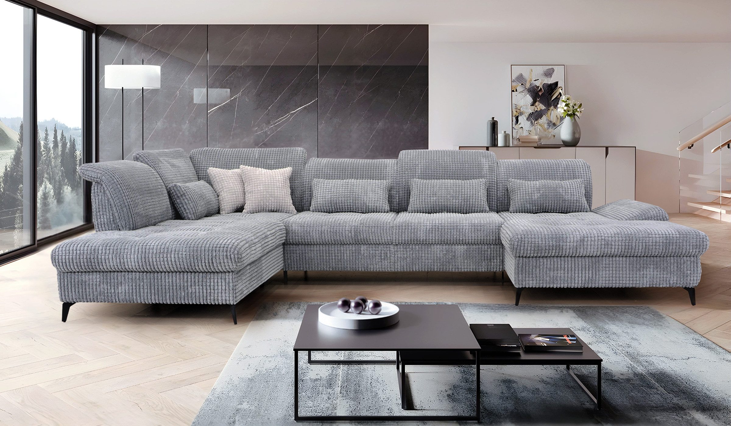 Ausstattung | Sitztiefenverstellung Kopfteilverstellung Armteilverstellung Schlaffunktion Kleiner Bettkasten in Ottomane Gasdruckfedern im Bettkasten Nierenkissen - 4 St. |